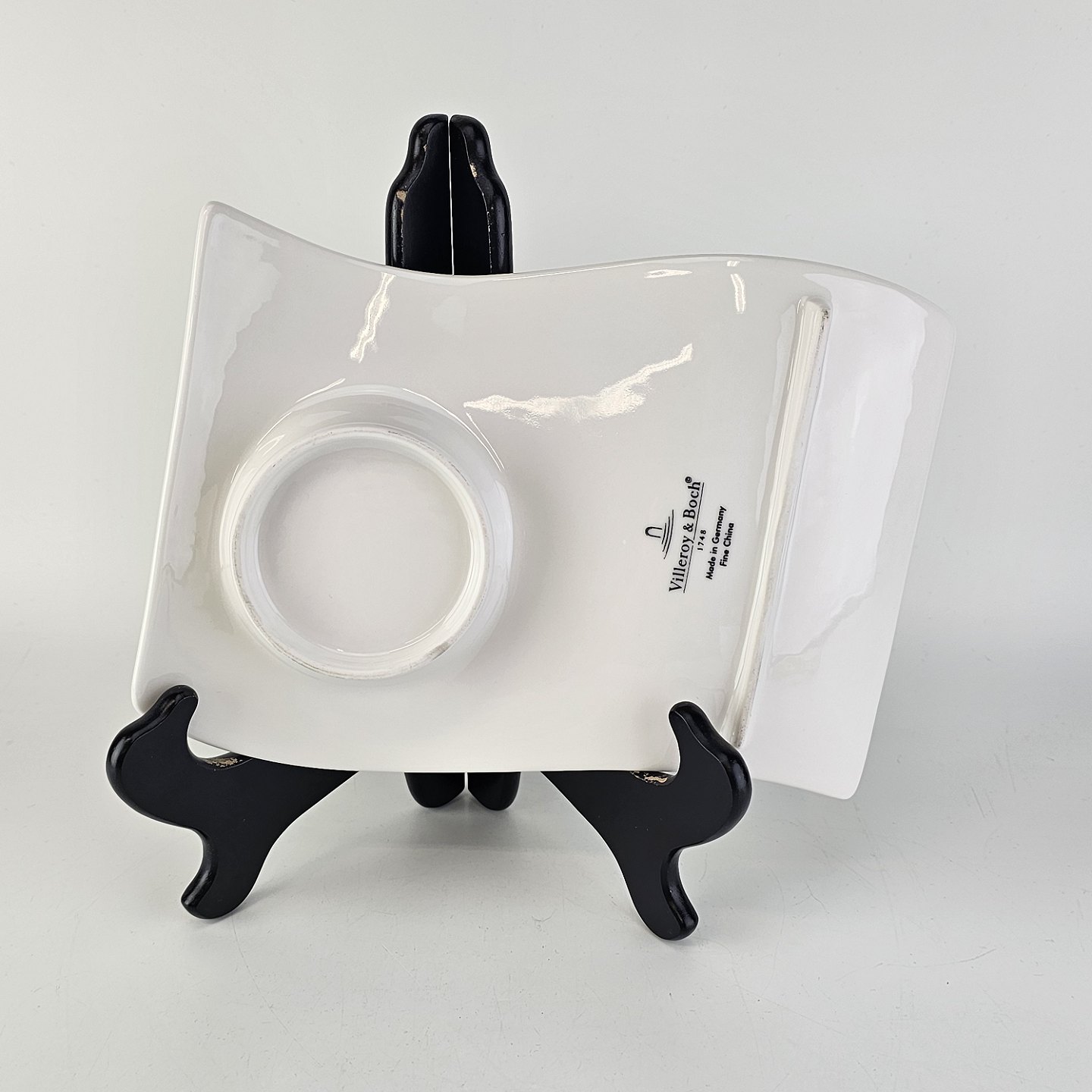 Stellet er i hvidt porcelæn med en buet form