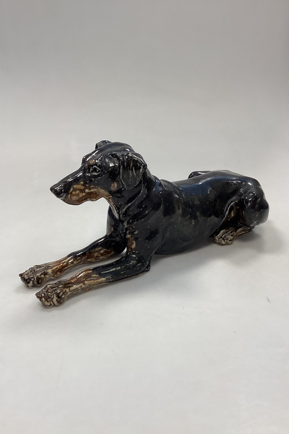 Royal Copenhagen Figur af hund - Dobermann No. 22691. Designet og signeret af Jeanne Grut. Glaseret stentøj. 1. Sortering.Måler 37,5 cm x 15,5 cm / 14,76 in. x 6,10 in.