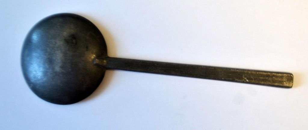 1700-tals brændevins ske i tin. Stemplet. L.: 17,5 cm.NB: Meget sjælden!