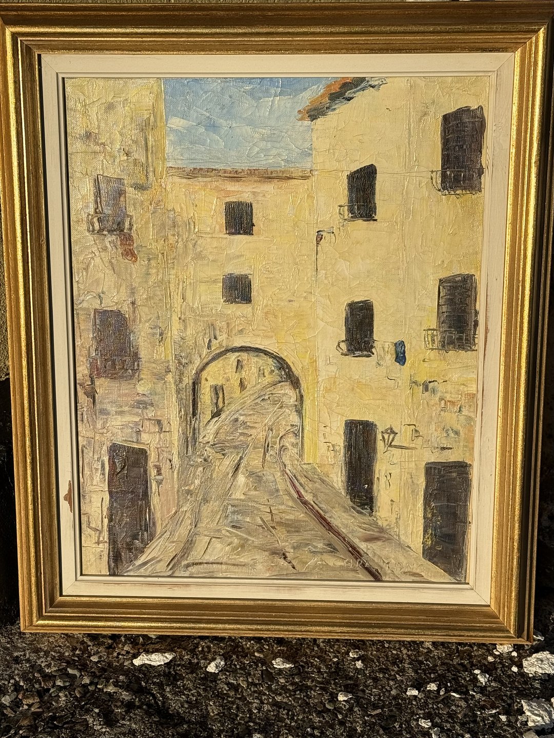 Carl Lang, Sydlandsk bymotiv, Olimaleri på lærred, Mål med ramme 51x43cmLager: 1
