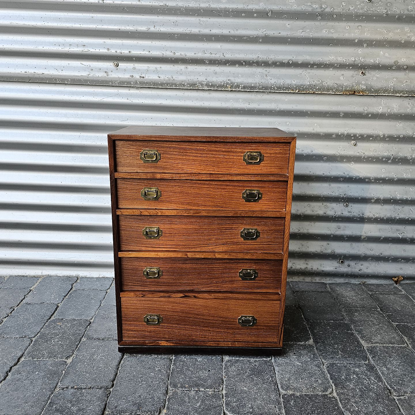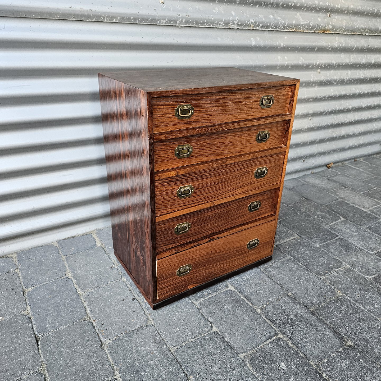 Kommode i palisander med 5 skuffer med messing grebMarkeret E. 817