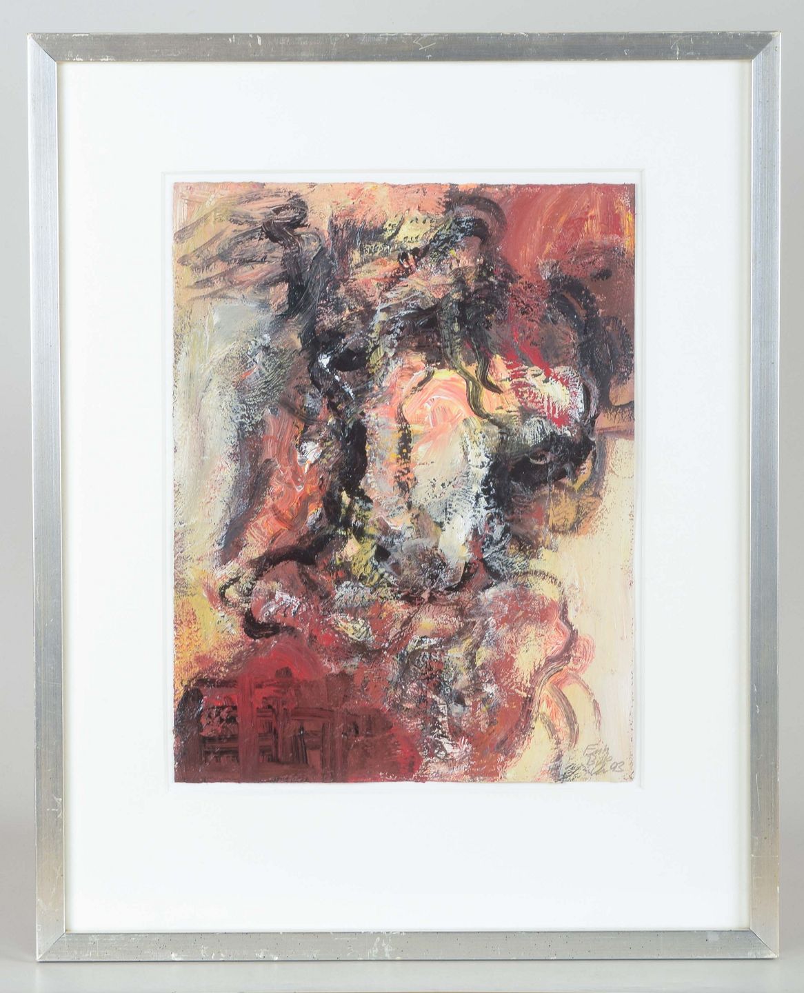 Et ekspressivt maleri af Erik Bille Christiansen udført i 1993. Kompositionen er præget af kraftige penselstrøg og et varmt farvespil i røde, sorte og jordfarvede nuancer, hvor figurative elementer antydes i en ellers abstrakt billedverden.