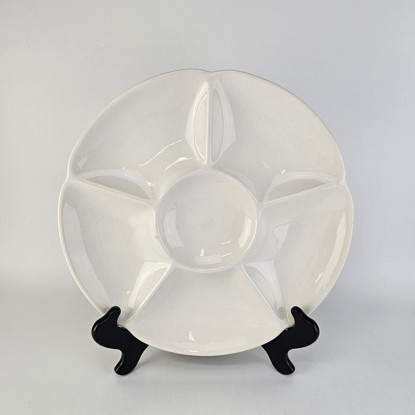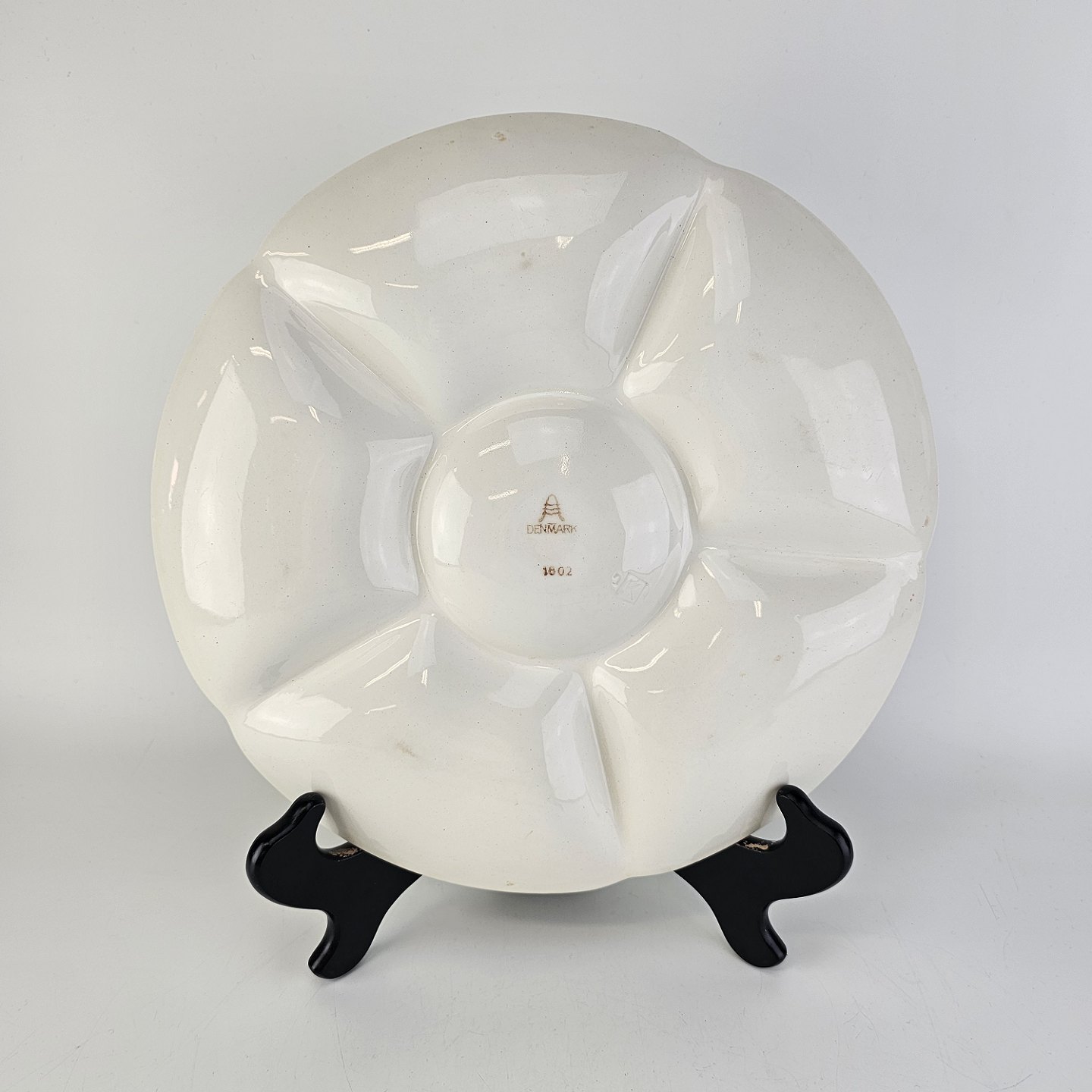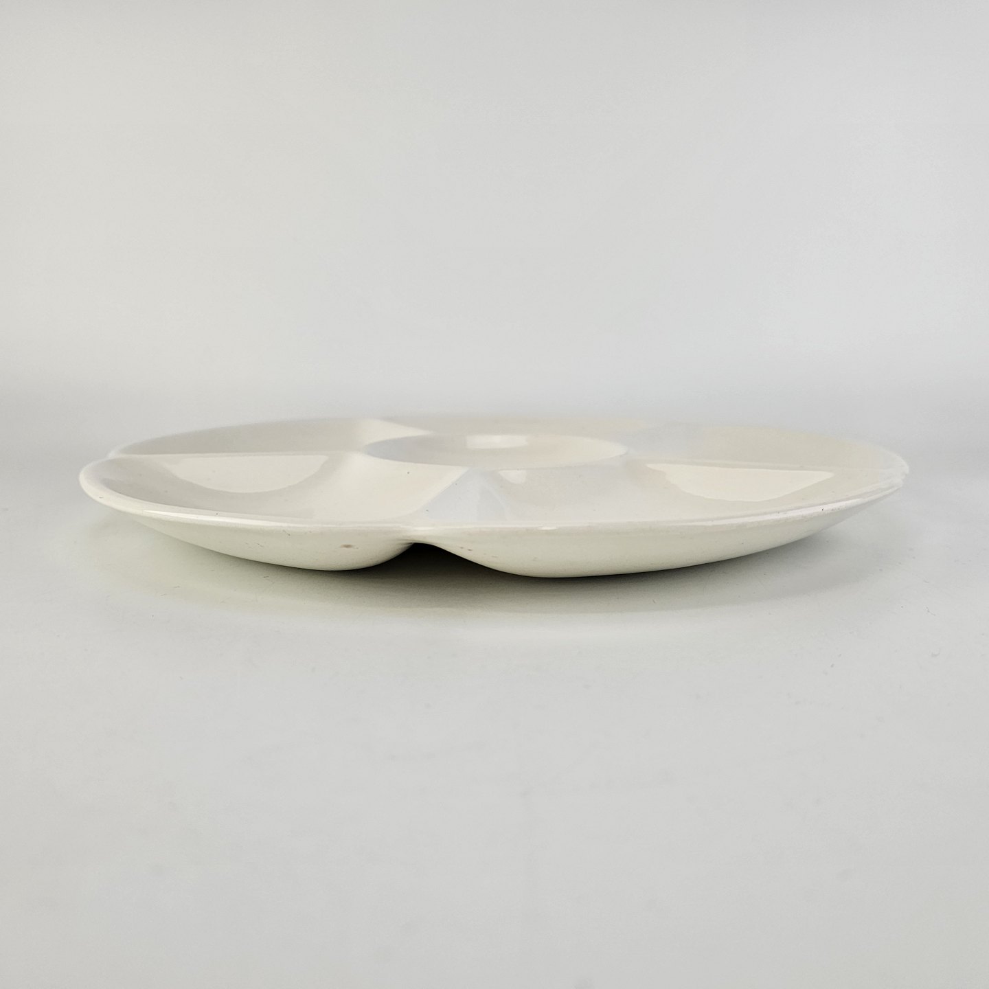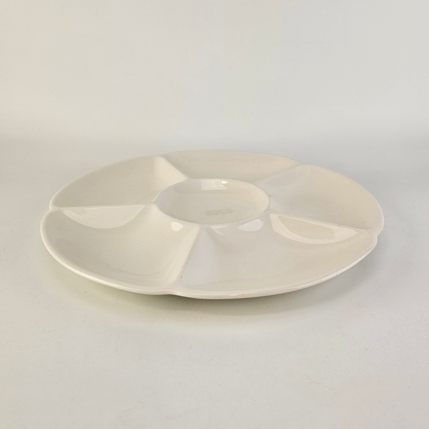 Rundt fad med seks rum i cremefarvet fajance fra stellet AlmaStemplet 1802