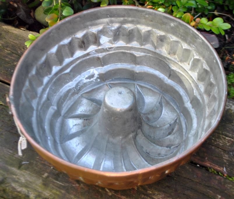 Kage/budding form i kobber, 19. årh. H: 11,5 cm. Dia: 25,5 cm.Emne nummer: 28308