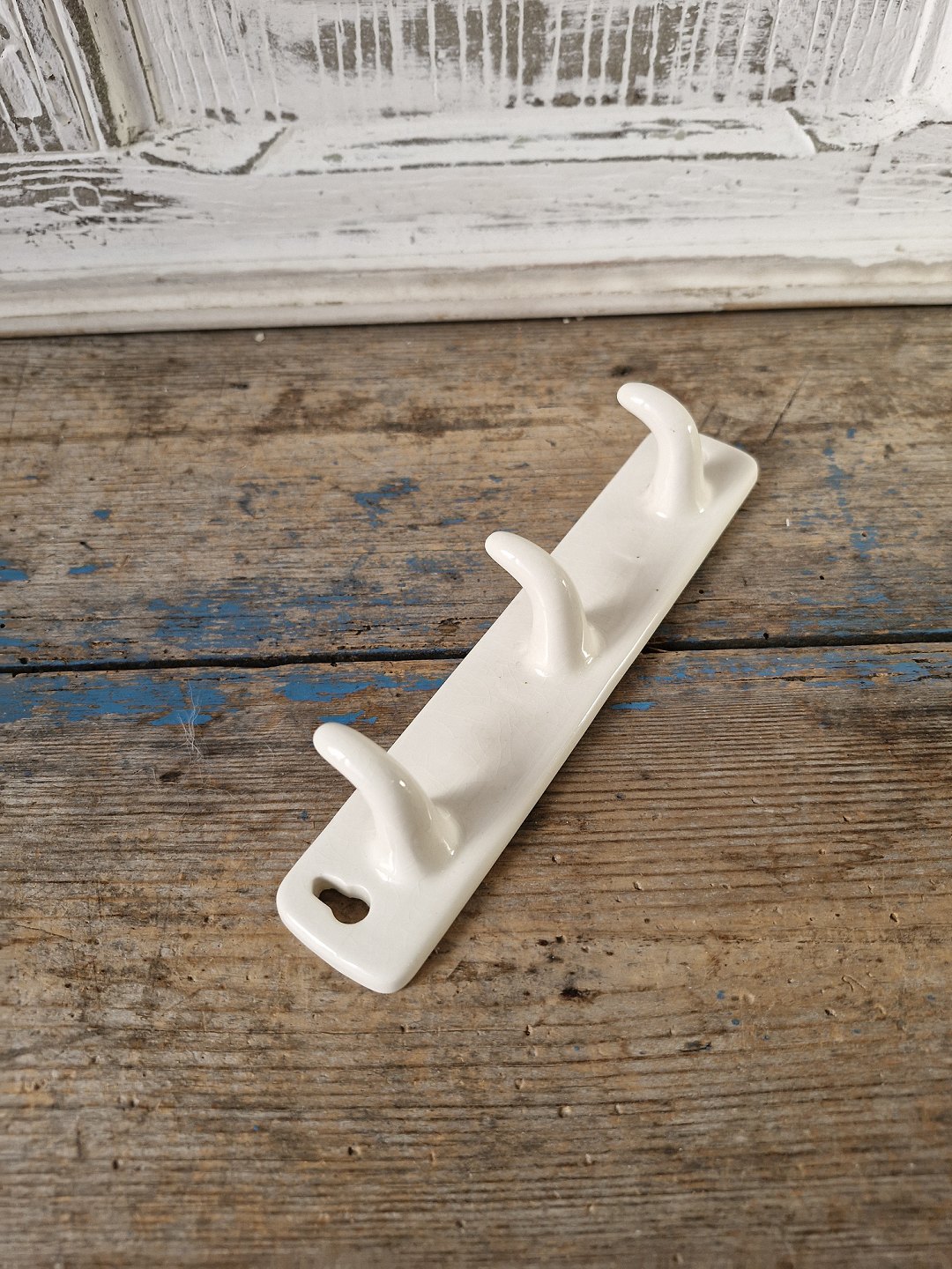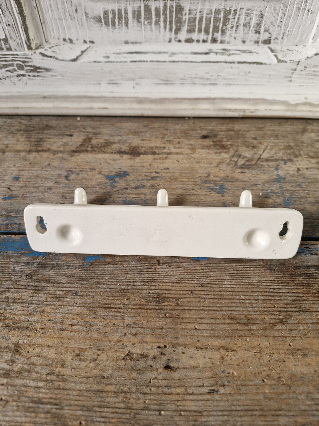 Aluminia cremefarvet fajance knagerække med 3 krogeMål 3,5 x 18,5 cm.
