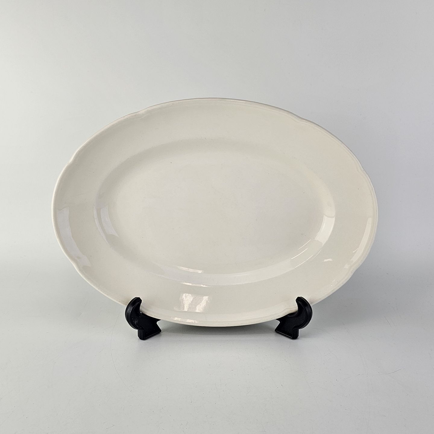 Lille ovalt fad i cremefarvet fajance fra stellet AlmaProducent Aluminia