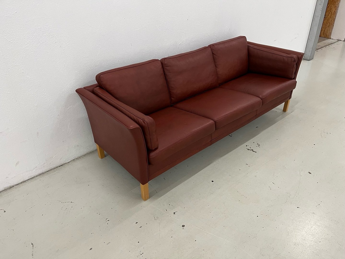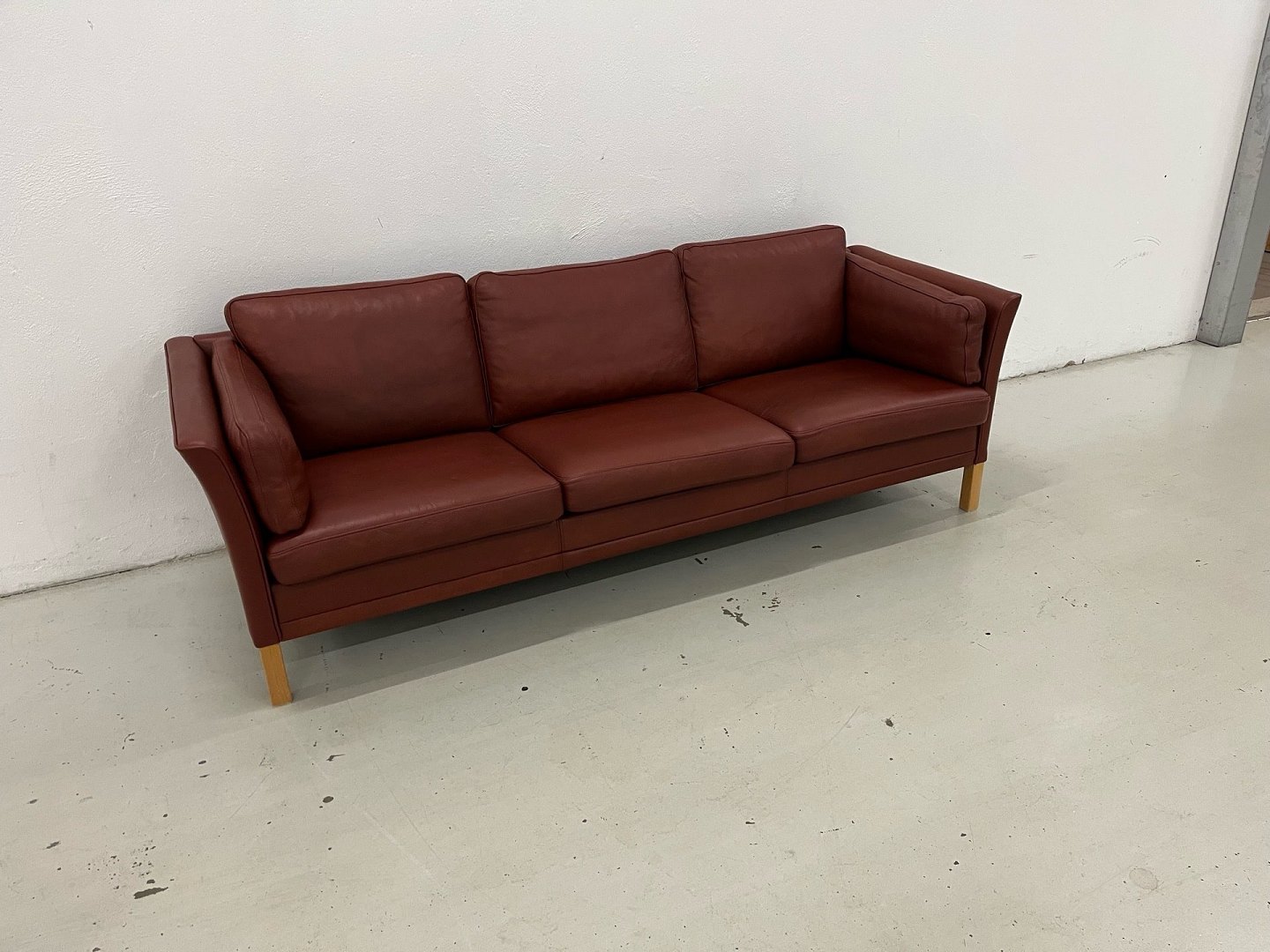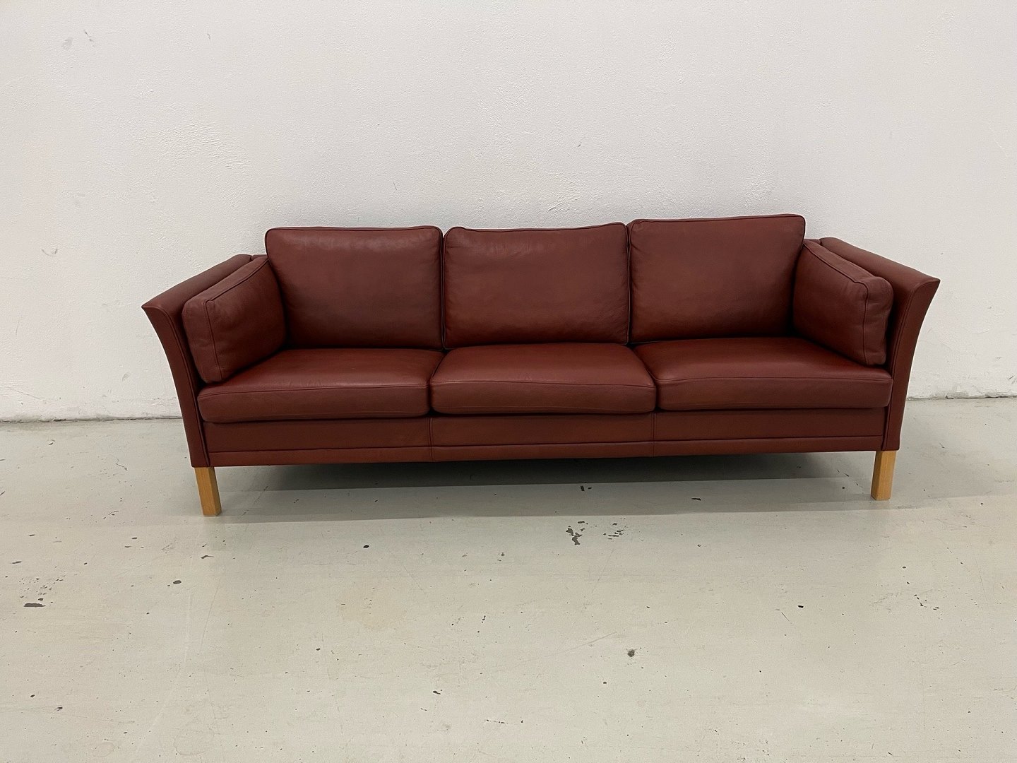 Arkitekt designet Mogens Hansen MH2225 3 Pers. Sofa i Gefion læder cognac og ben 40×40 i bøg.Nypris.42.339,-