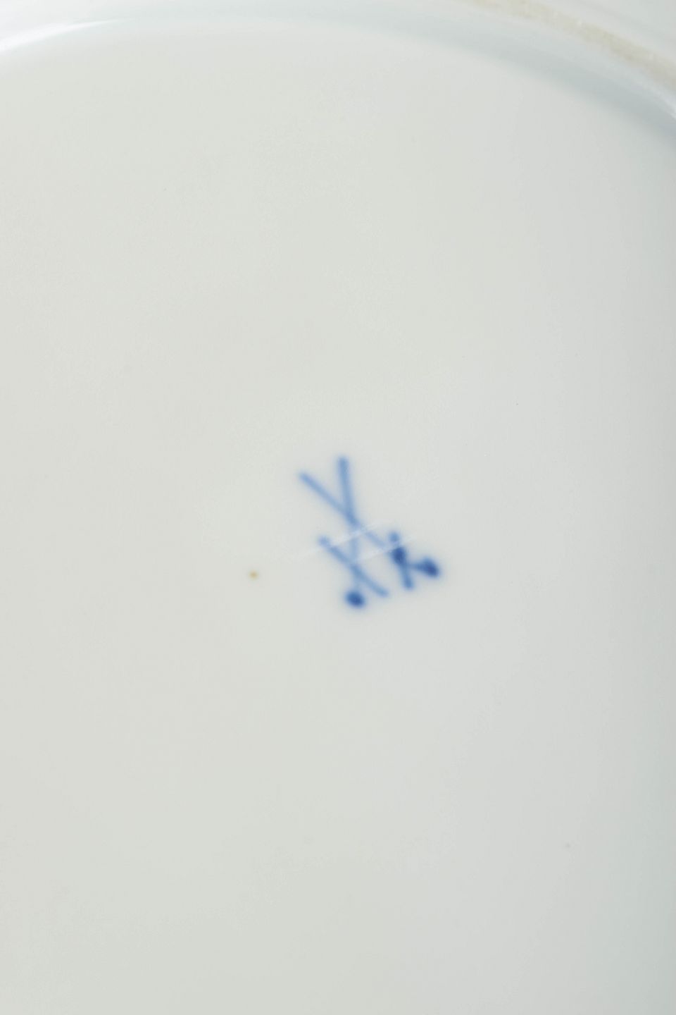Meissen Porzellan er Europas ældste porcelænsfabrik, grundlagt i 1710 i Tyskland. Den ikoniske “Zwiebelmuster” (blå løg) blev introduceret i 1739 og har siden været blandt de mest kendte porcelænsdekorationer i verden. Mønstret er inspireret af østasiatiske porcelæner og fremstilles stadig i dag. De to korslagte sværd på bagsiden er Meissens kendemærke og blandt verdens ældste varemærker.