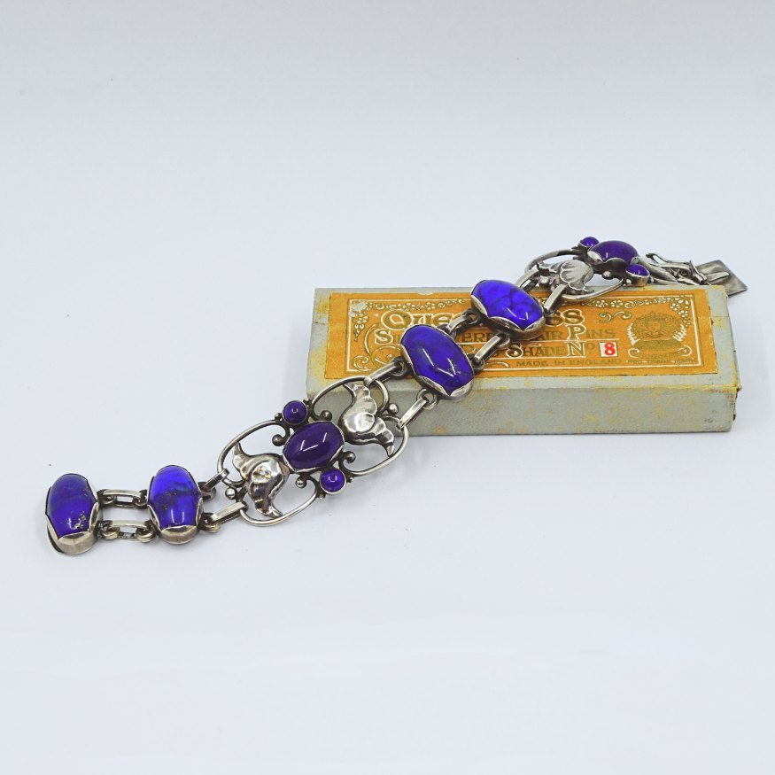 Tidligt Georg Jensen sølvsmykke.Skønvirke armbånd i sølv. Leddelt og prydet med lapis lazuli.