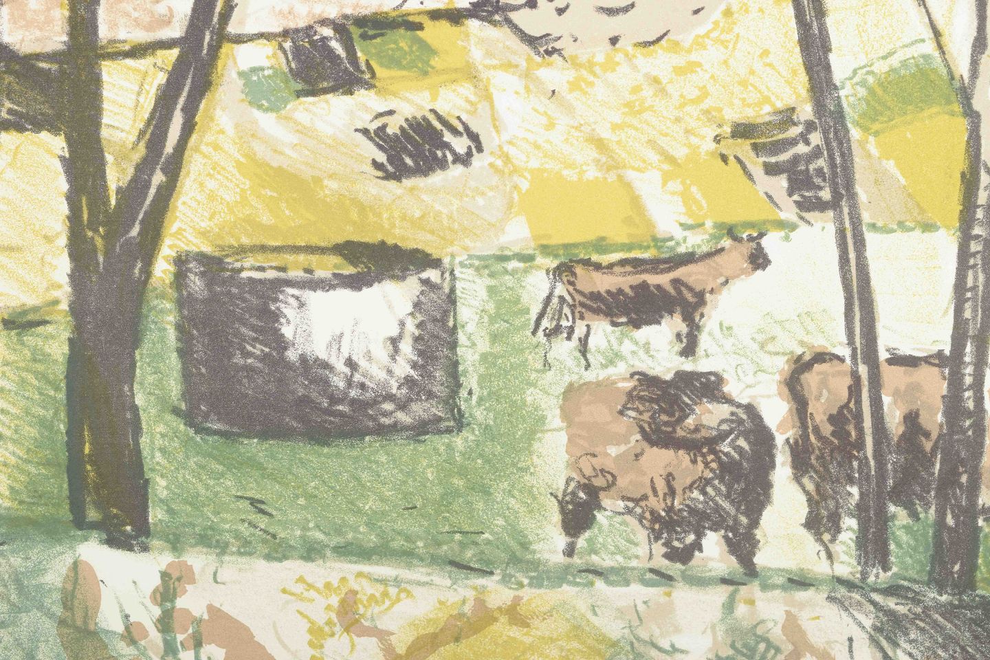 Poul Ekelund (1921–1976)Farvelitografi med køer i landskab, 1972.