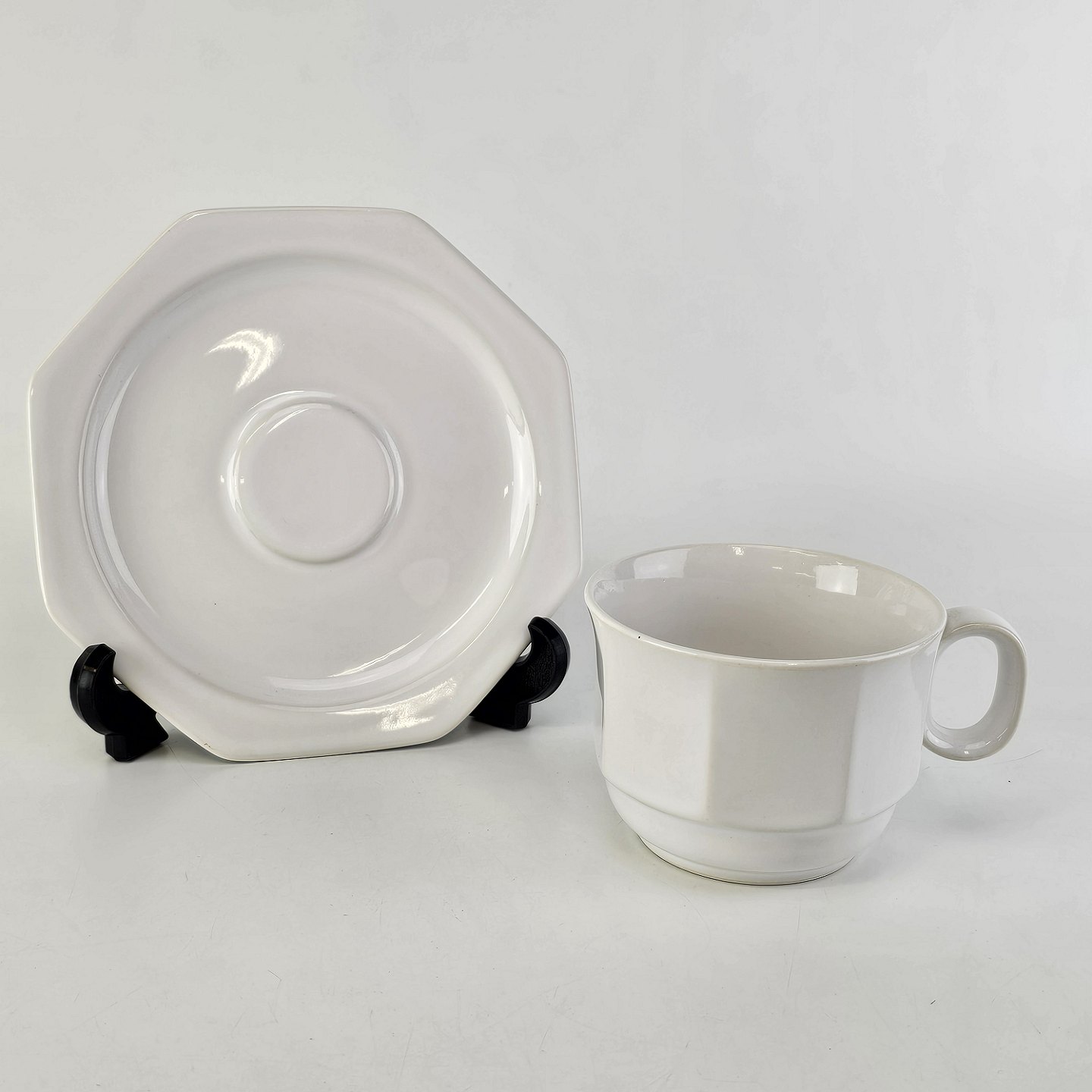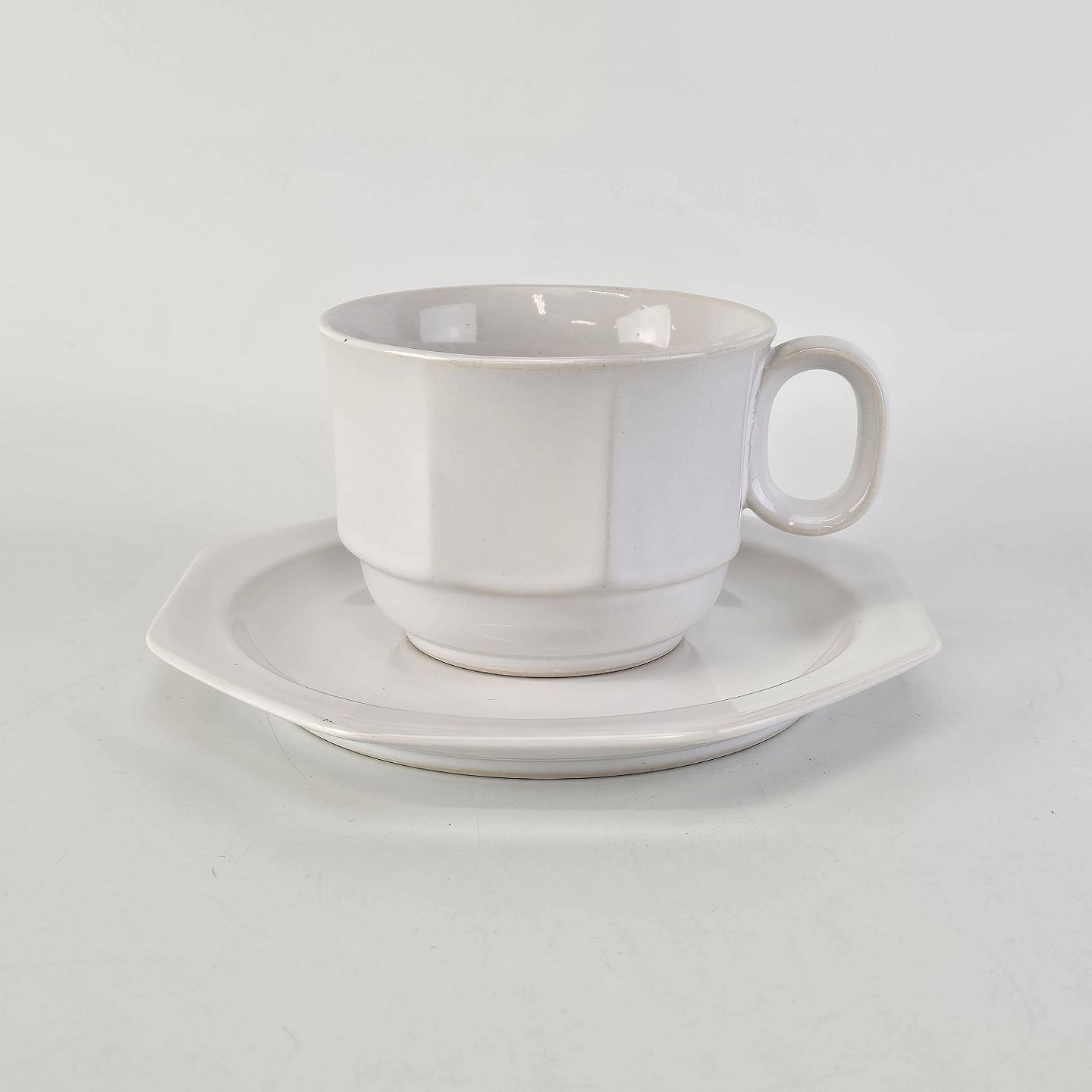 Kop og underkop i hvid stentøj fra stellet CaféNr. 305