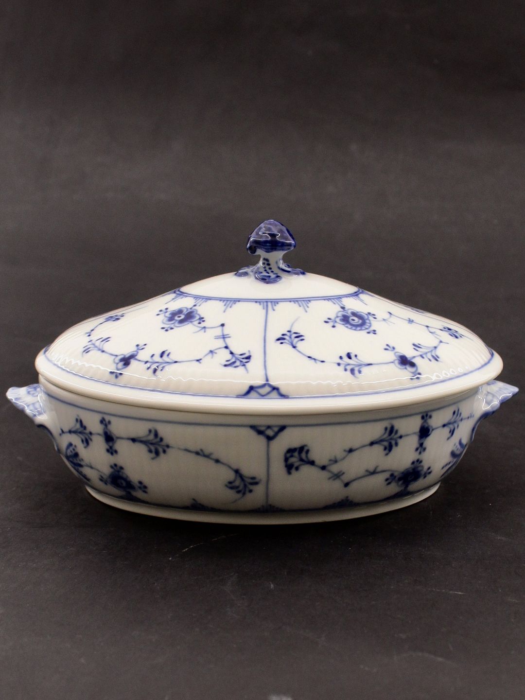 Royal Copenhagen Musselmalet Riflet oval Terrin Nr. 405 1.sortering emne nr. 622248 Udstiller