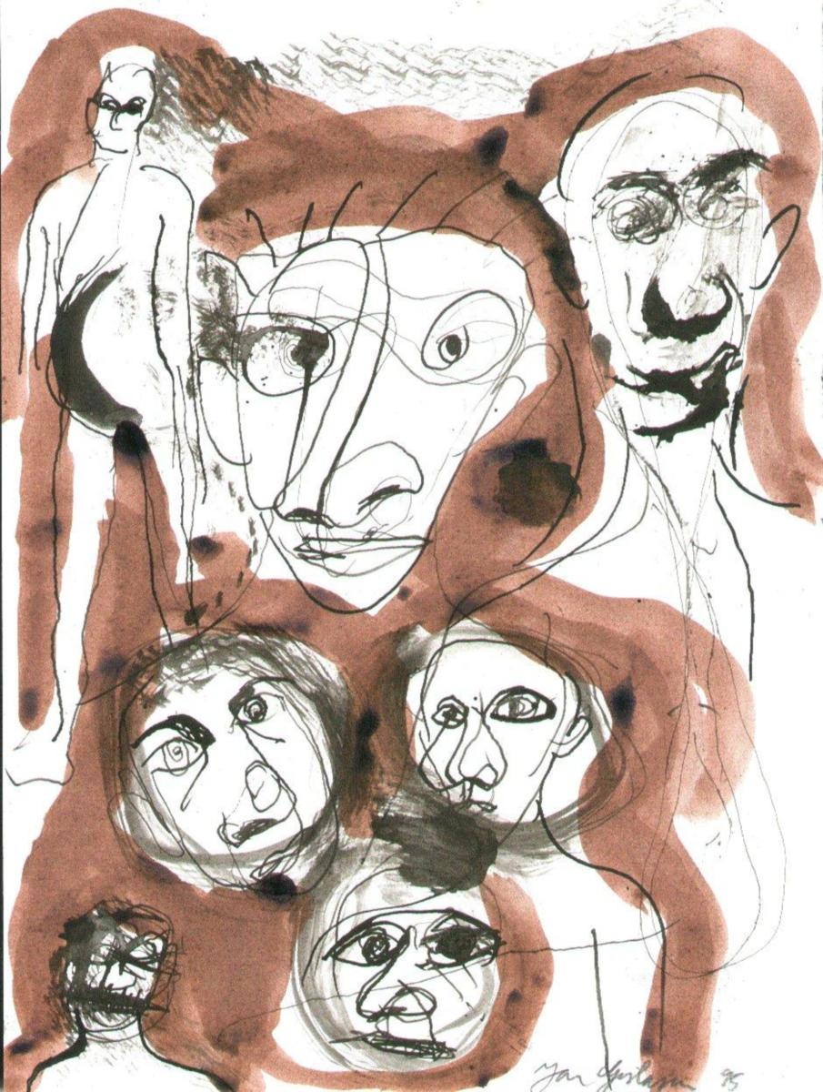 Gislason, Jon (1955-). Komposition. Akvarel og tusch på papir. Sign. Jon Gislason 95. 32,5 x 24,5 cm.Uden ramme.