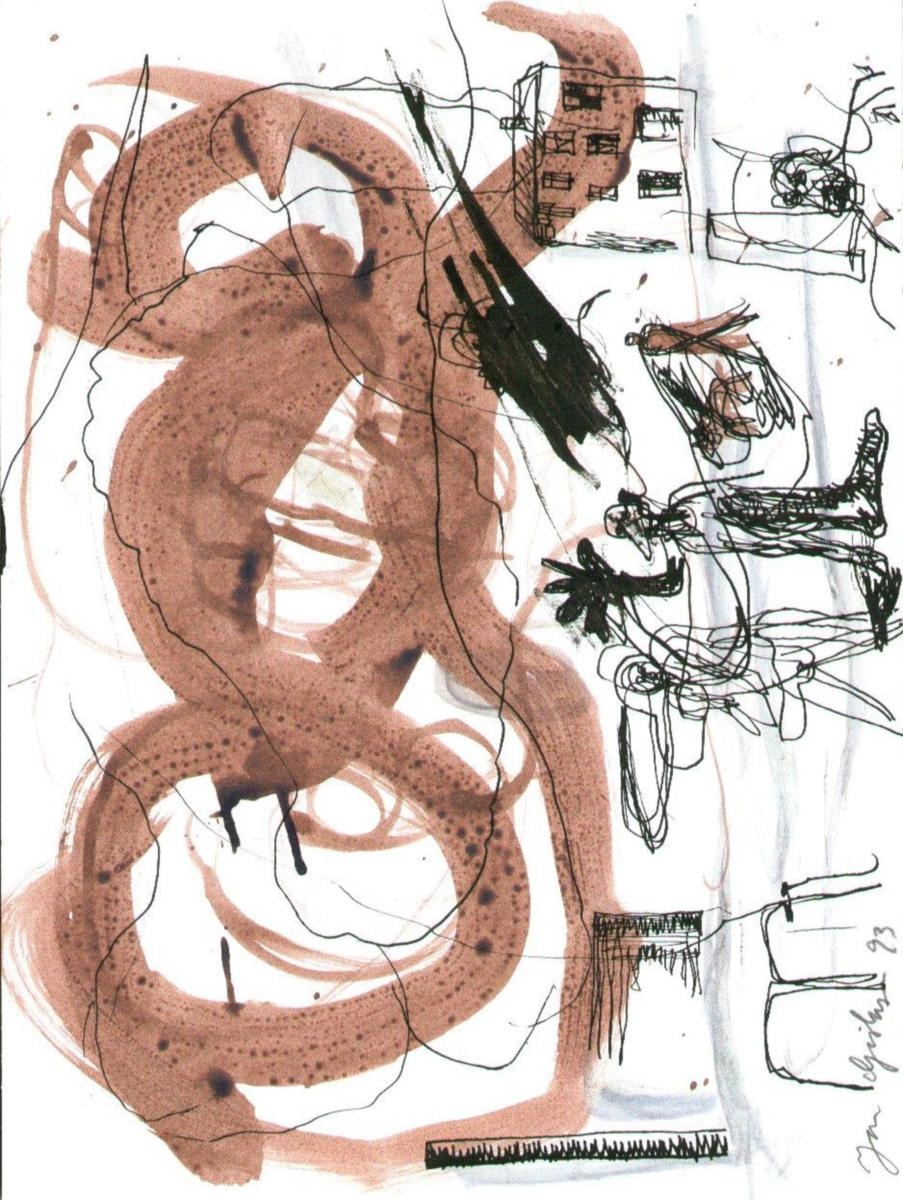 Gislason, Jon (1955-): Komposition. Akvarel/tusch på papir. Sign.: Jon Gislason 98. 31,5 x 24 cm.Uden ramme.