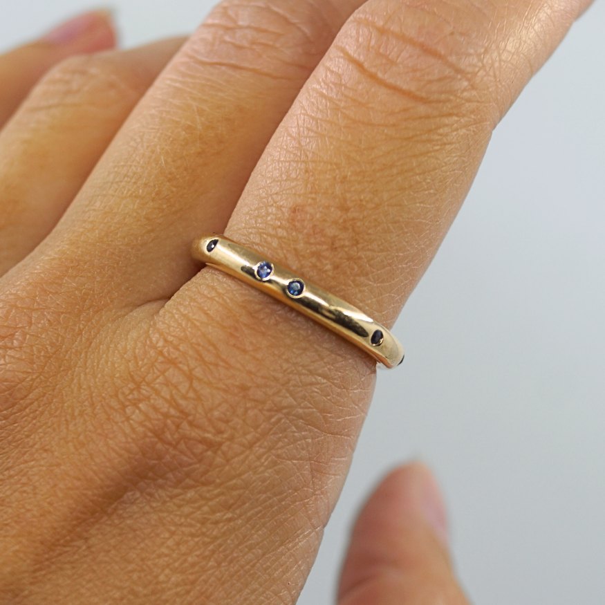 Carl Antonsen; Ring i 14 kt. guld, prydet med safirer Ring str. 58. Stemplet "CA 585".C. Antonsen, Odense.