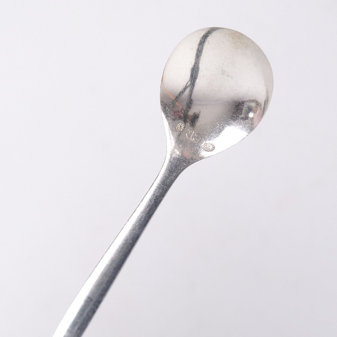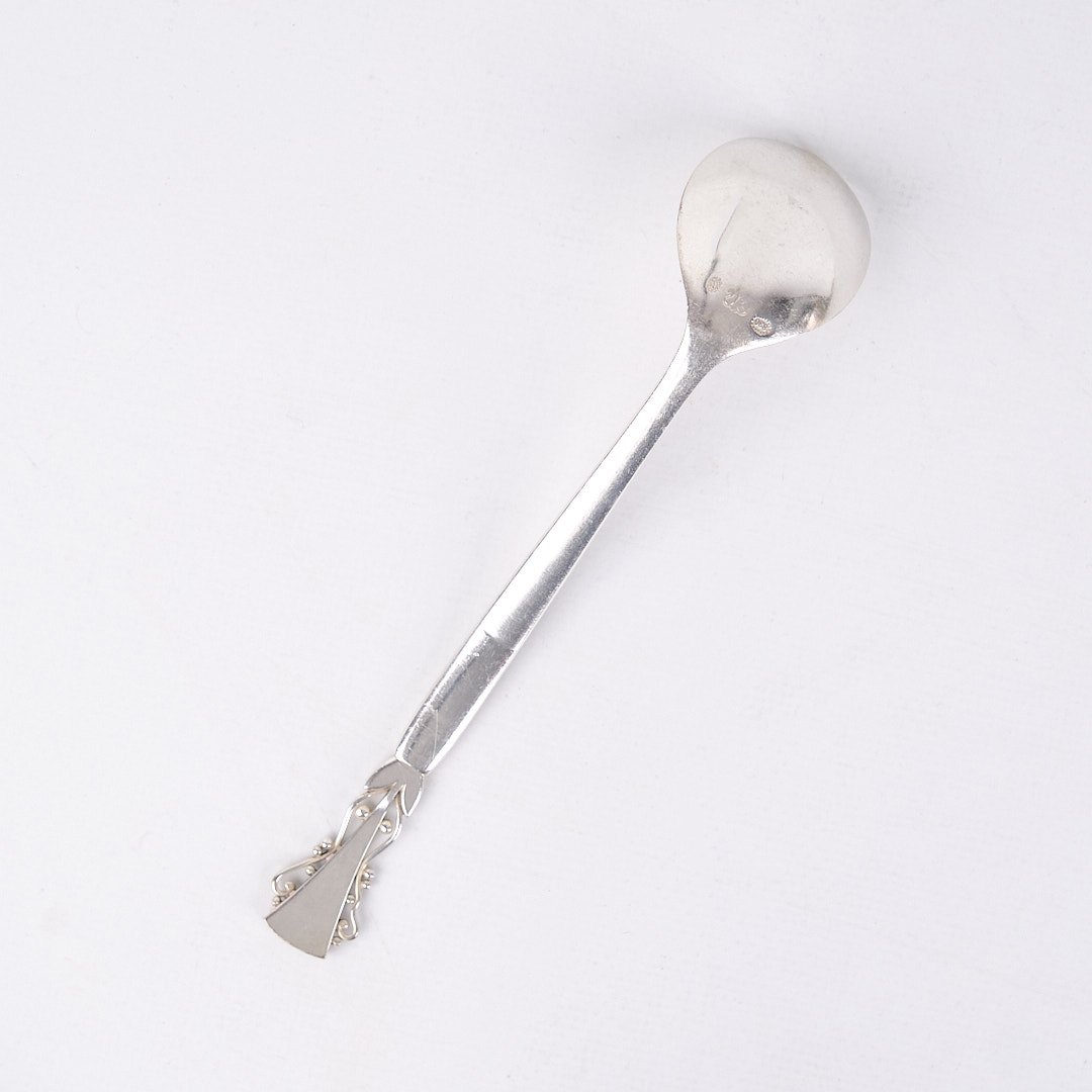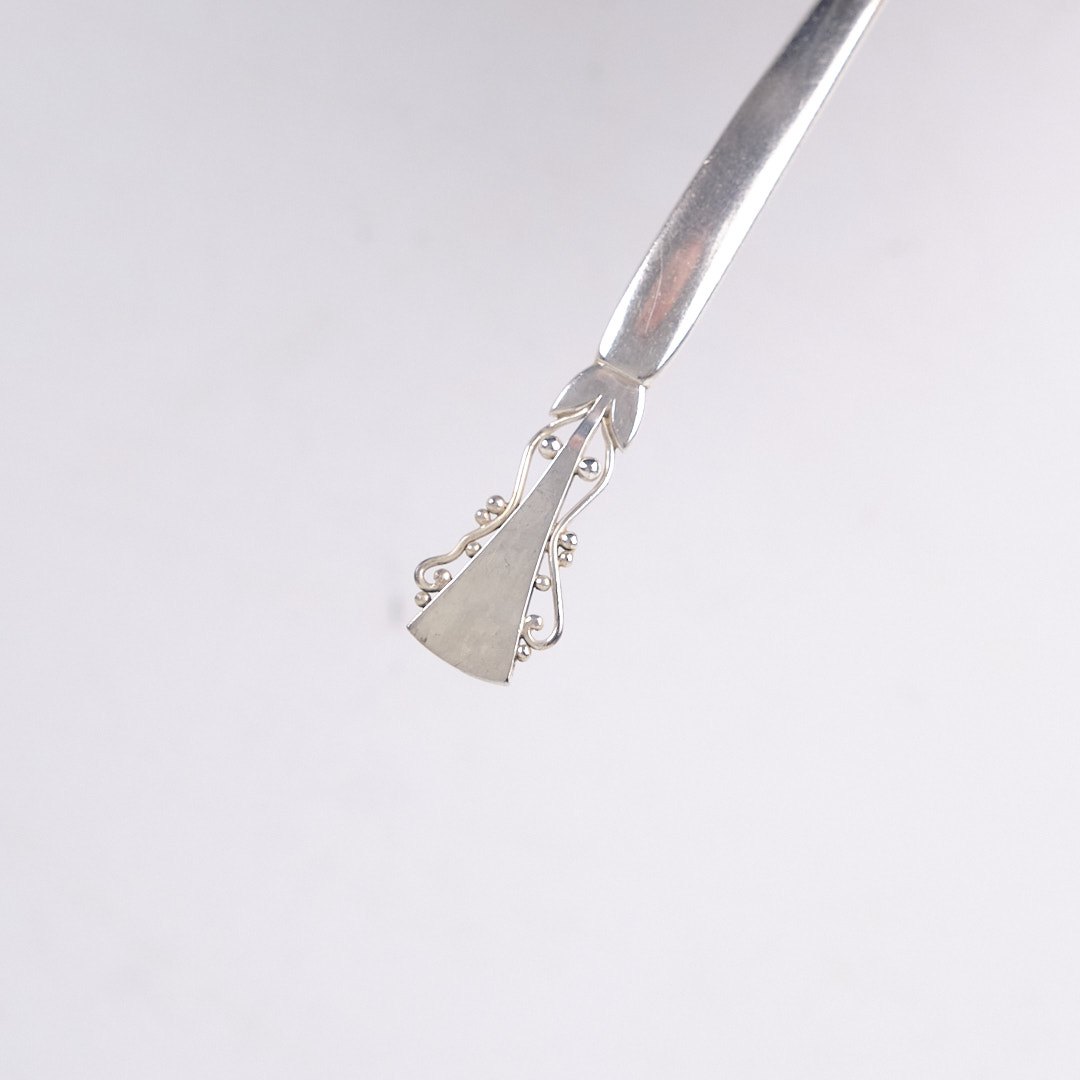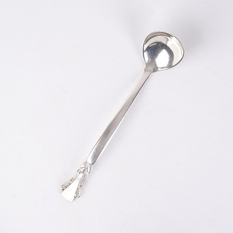 Flødeske udført i tretårnet sølv af sølvsmeden Evald Nielsen. Skeen er stemplet “EN 830s” og bærer Nielsens karakteristiske, enkle formsprog, som kombinerer funktionalitet med elegant håndværk.Spørg efter antal.