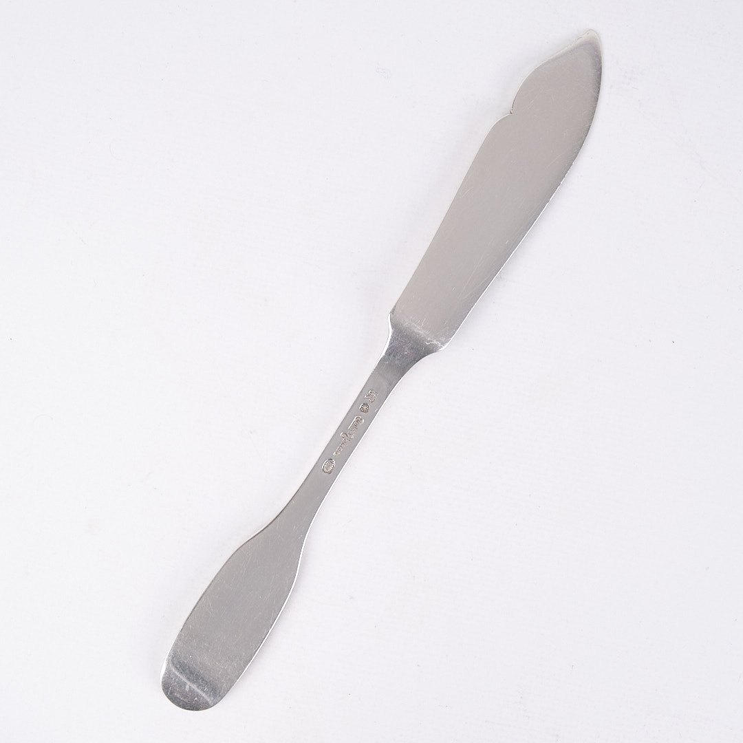 Fiskekniv i mønster nr. 19 af Evald Nielsen. Sølv 830s, stemplet. Elegant dansk sølvdesign i klassisk stil.Spørg efter antal.