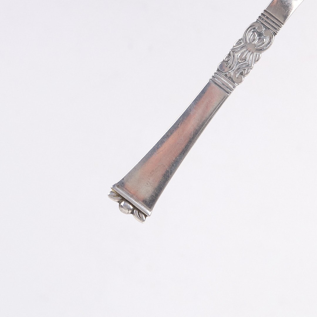 Pålægsgaffel i Rigsmønstret design af Poul Frigast. Sølv 830s fra 1930’erne.— Sølvsmed: Poul Frigast