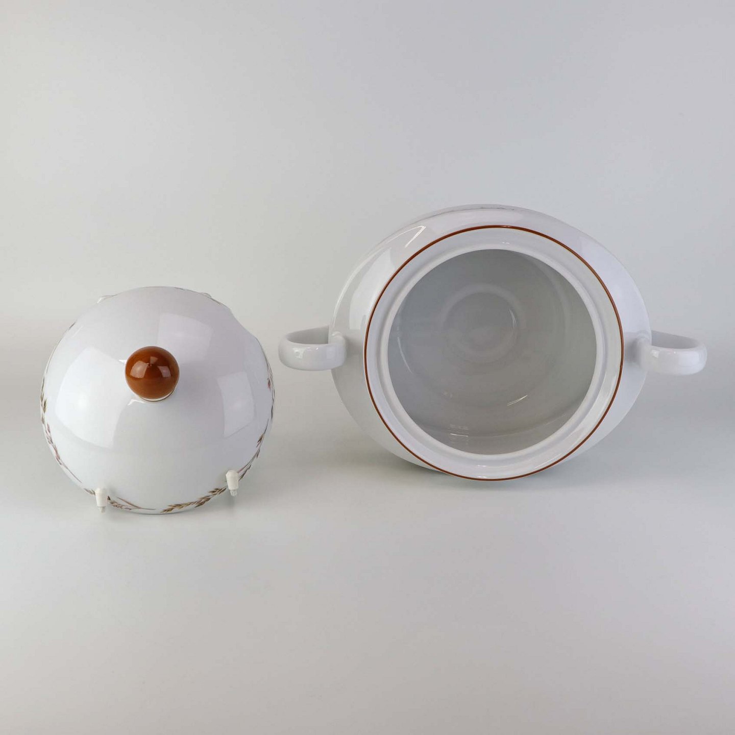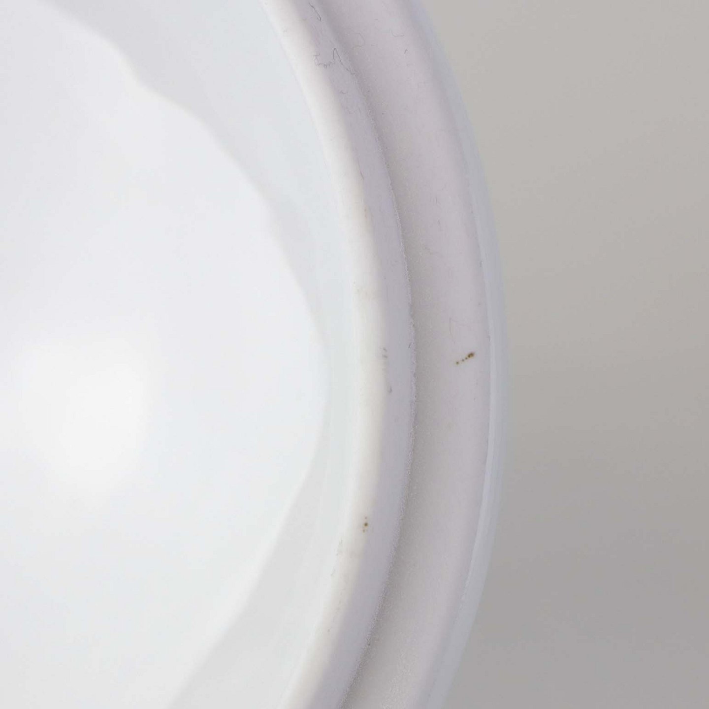 Fremstår med en mindre mørk streg under glasuren samt brugsspor under bunden.