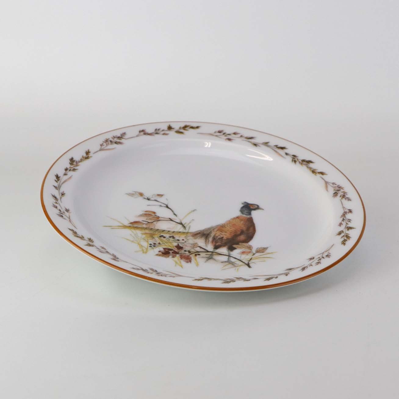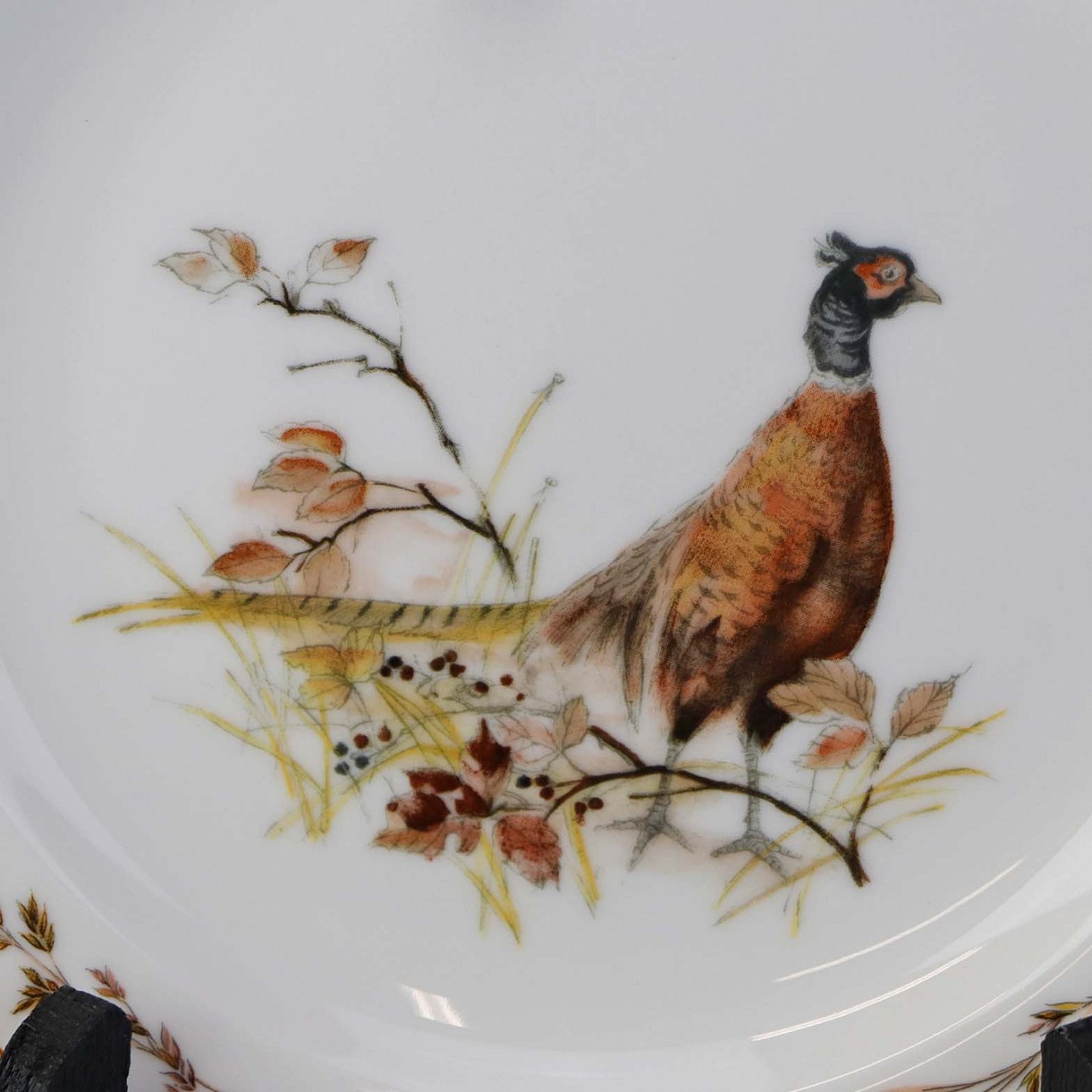 Desserttallerken i porcelæn og med motiv af en fasan fra stellet Jagtstel.Formgiver Mads Stage