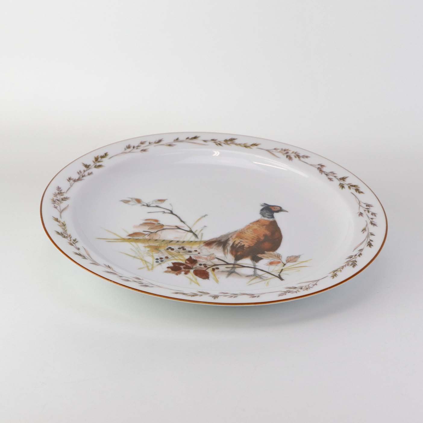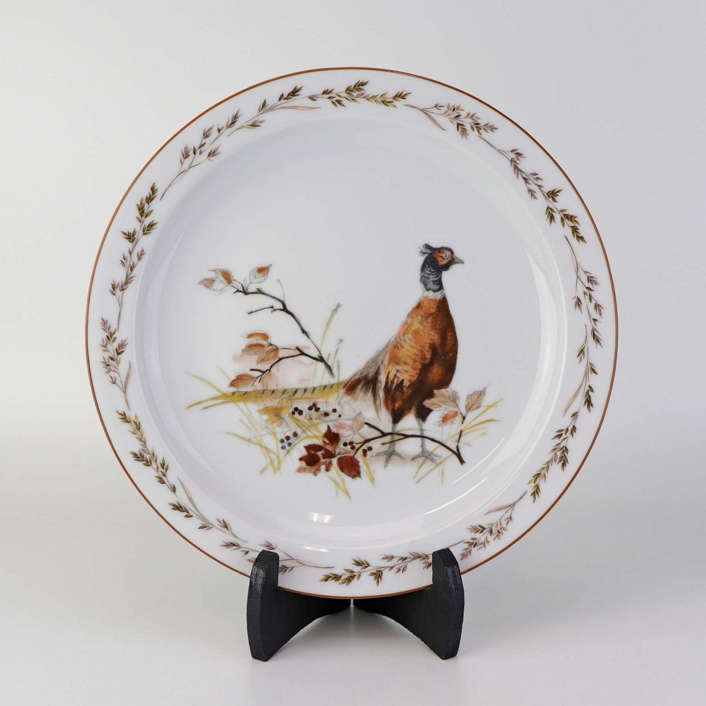 Flad middagstallerken i porcelæn med motiv af en fasan fra stellet Jagtstel.Formgiver Mads Stage