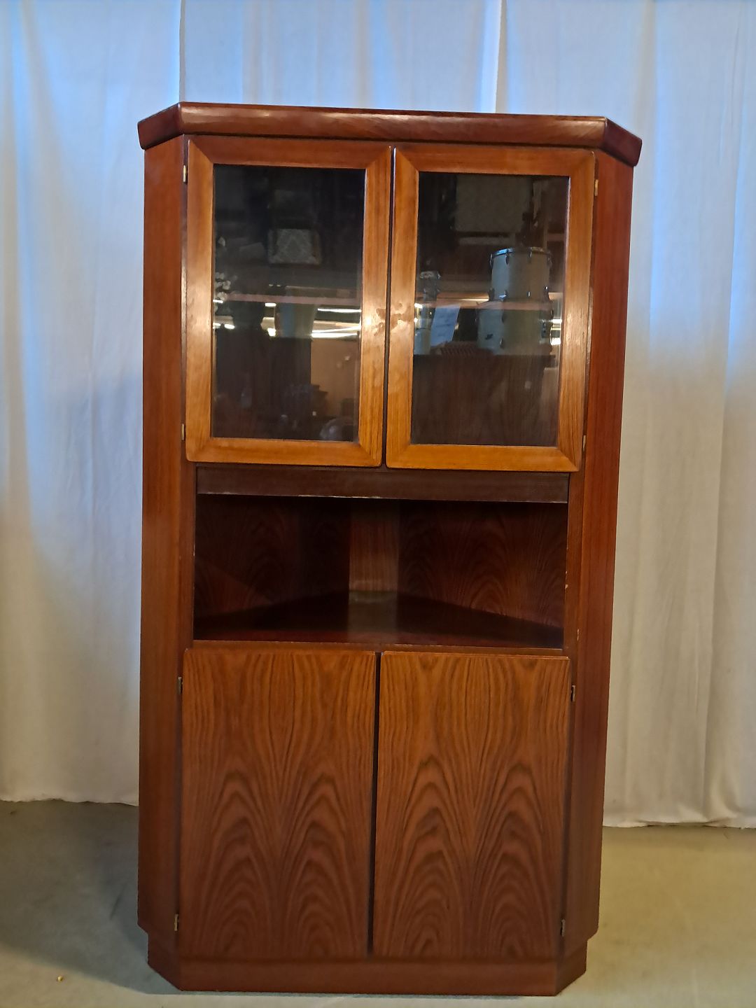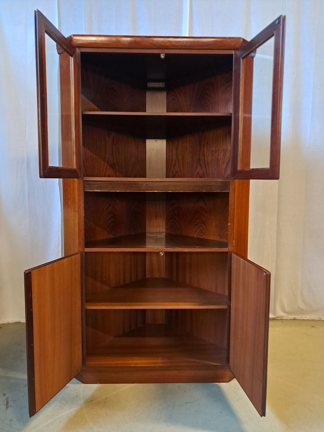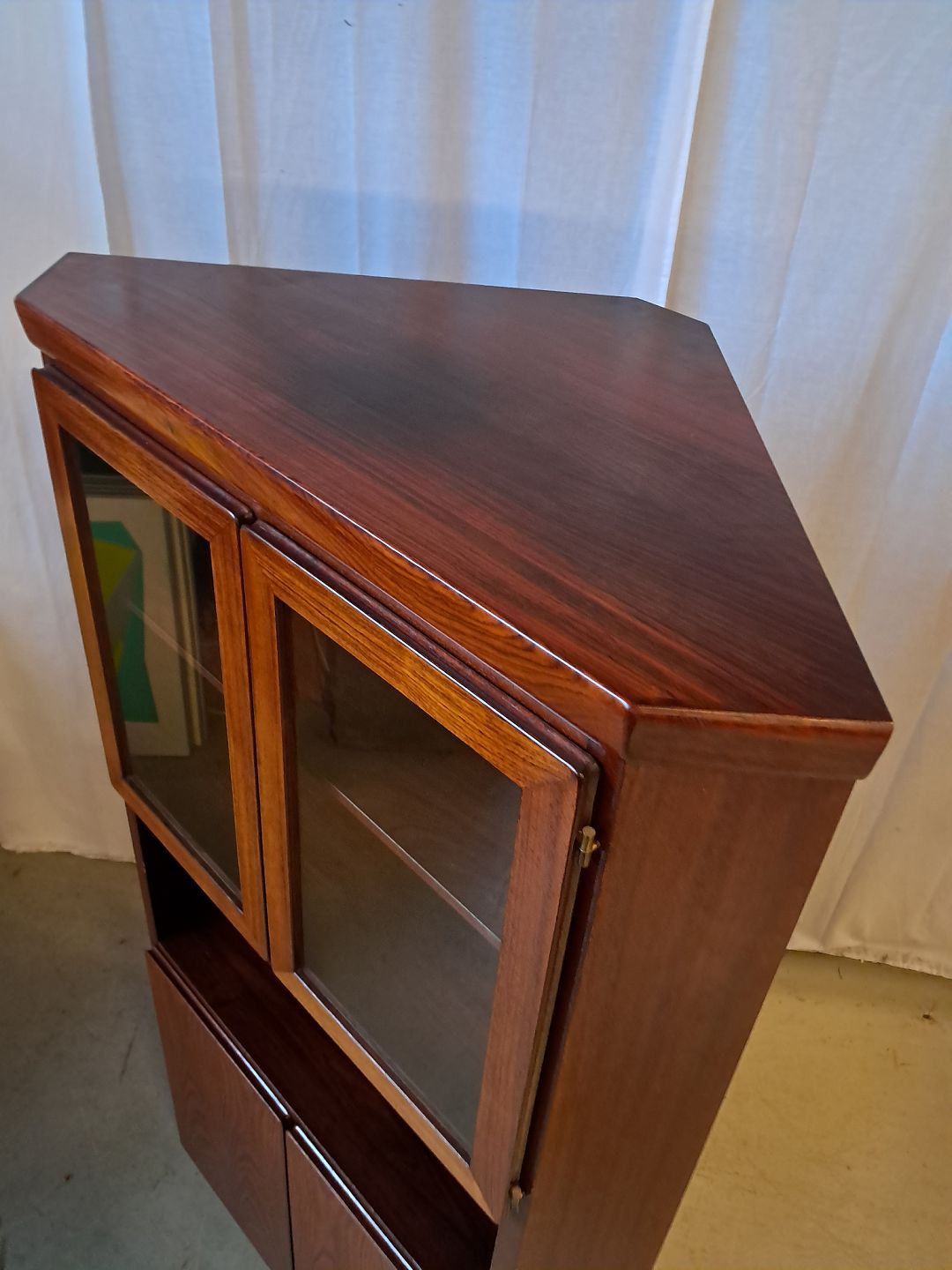 Hjørneskab i fineret palisander, fra 1960erne.Det har små brugsspor.