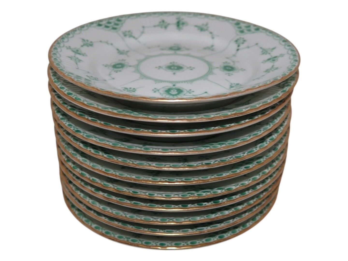 Royal Copenhagen Grøn Musselmalet Halvblonde med guldkant, kagetallerken.Det er sjældent at finde det helt tidlige grønne Musselmalet porcelæn.