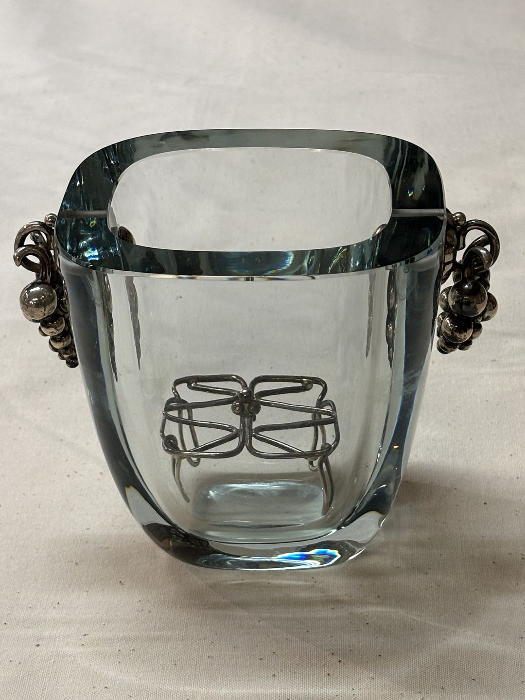 Holmegaard isspand med sølv hanke og rist. 1960 erne.
