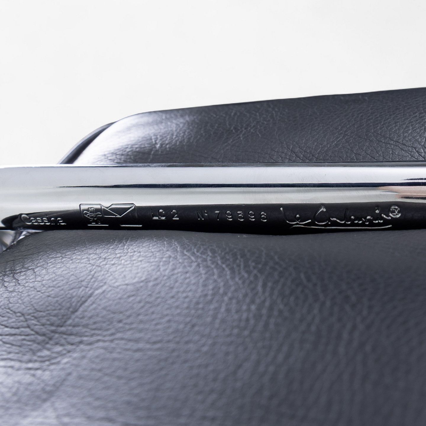 LC 2/3 - 3rd seater sofa in original black leather with steel frame. Manufacturer's stamp.
