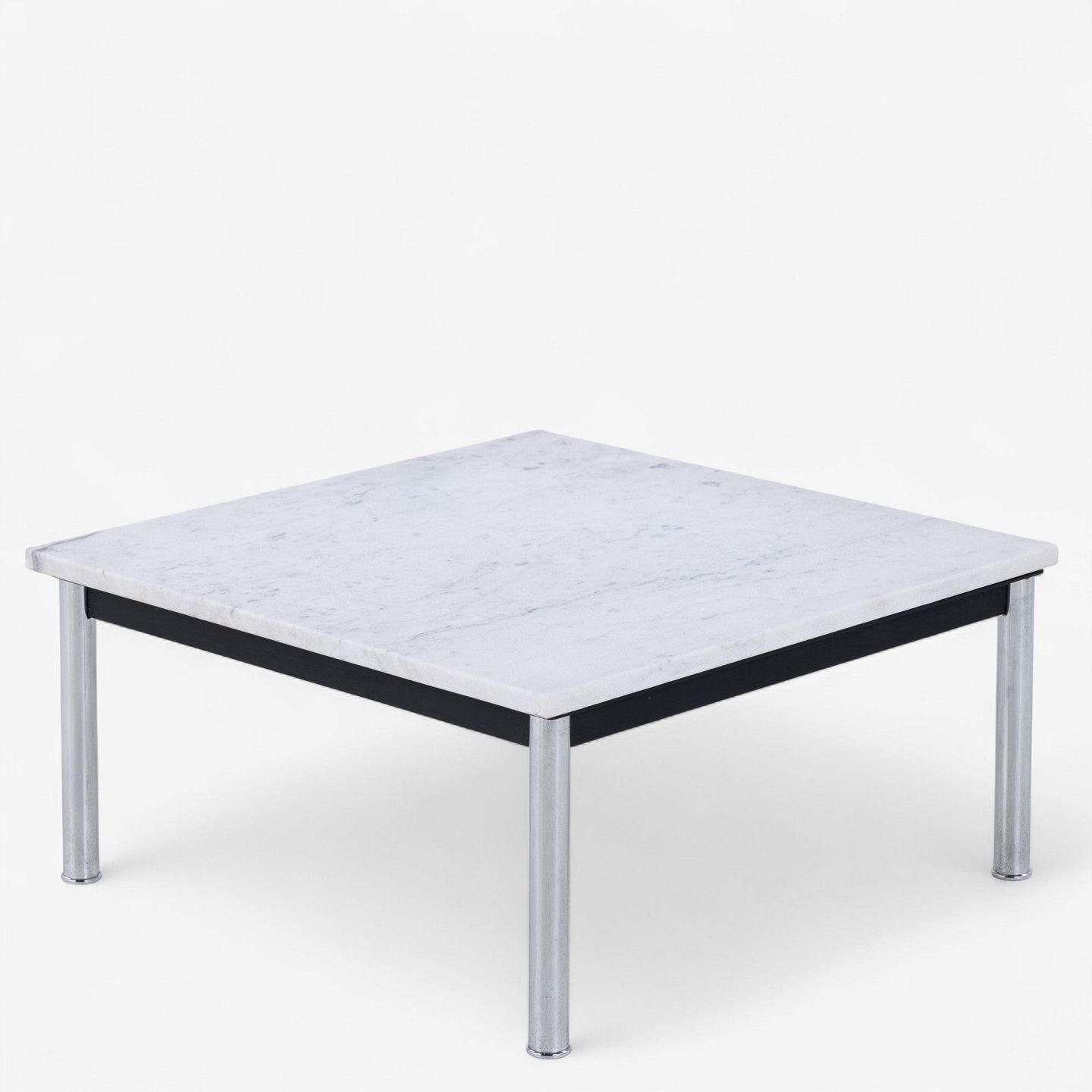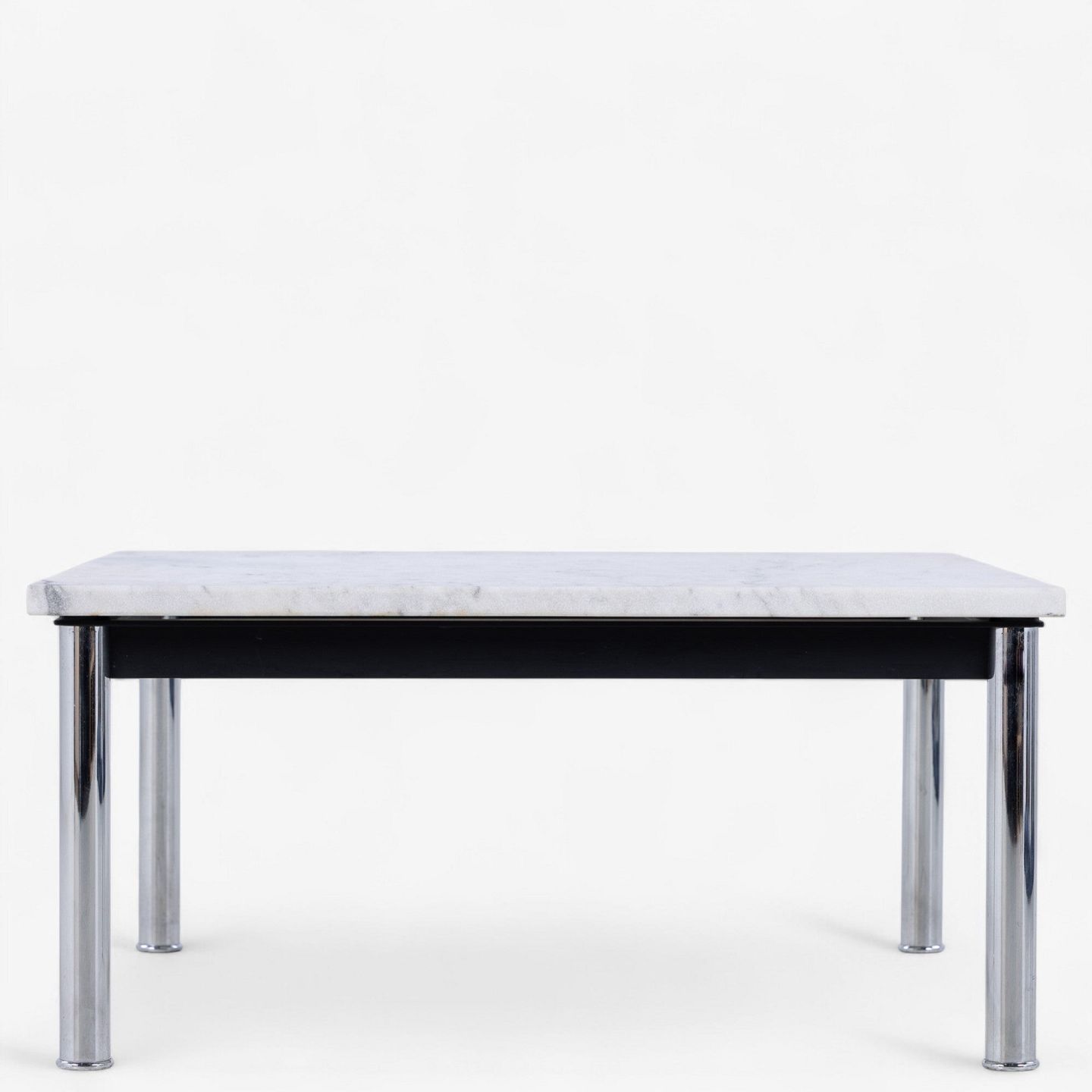 LC 10 - Sofabord med plade i hvid marmor på stel af stål.