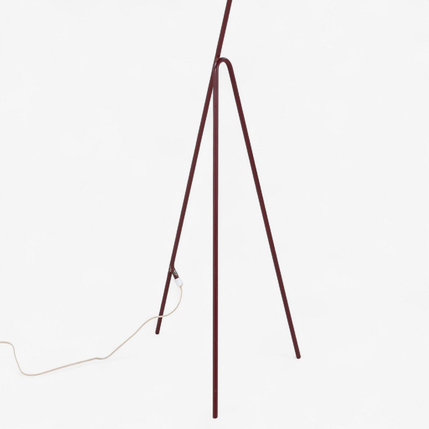 Model 569 - 'Giraffen'-gulvlampe med stel i patineret rødlakeret metal og hvid stofskærm.