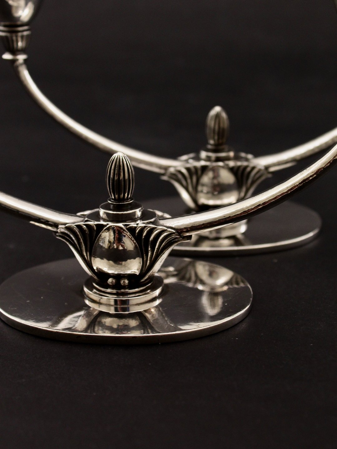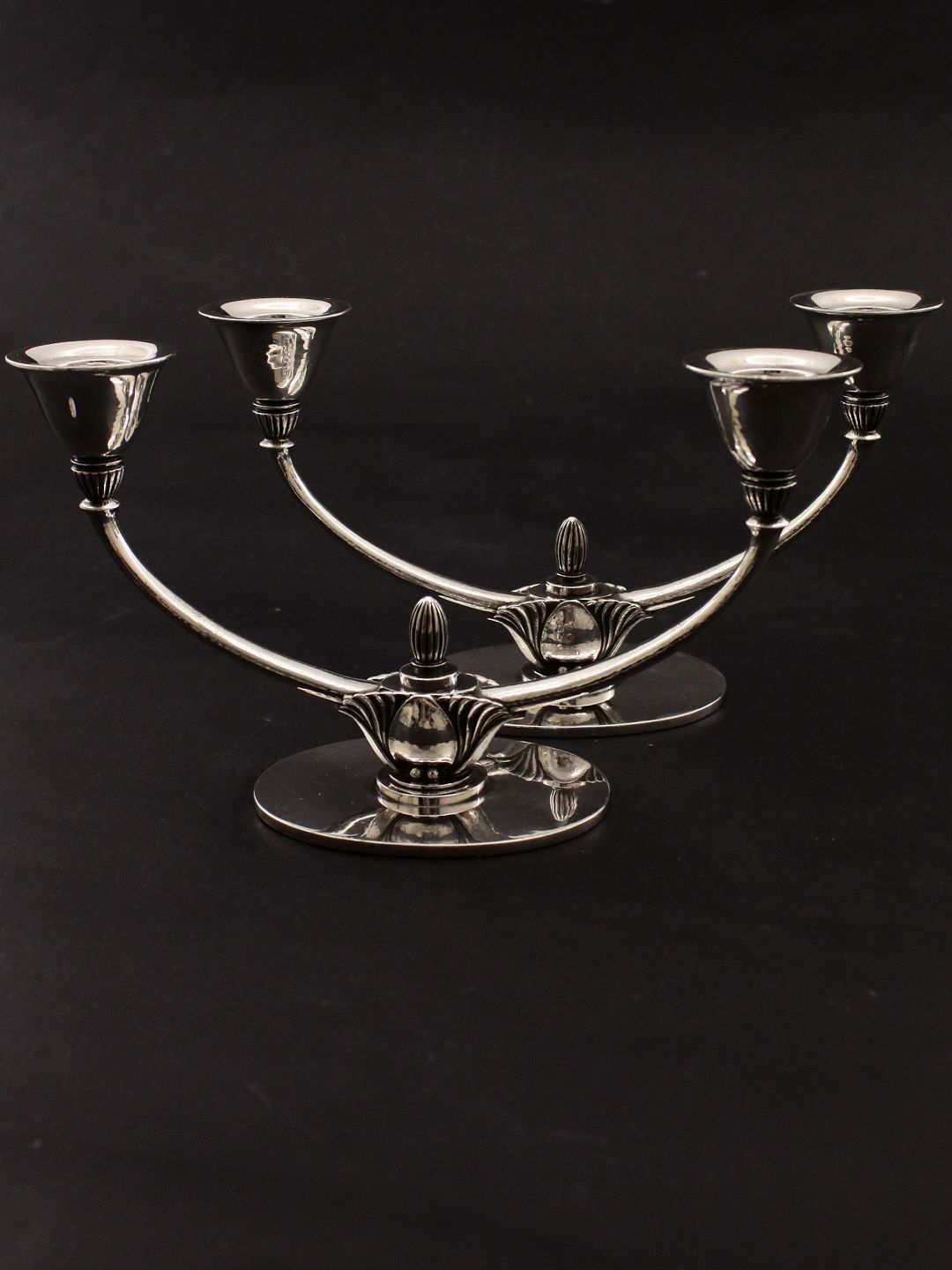Georg Jensen 2 armet sterling sølv art deco lysestager 273A emne nr. 622667 Udstiller