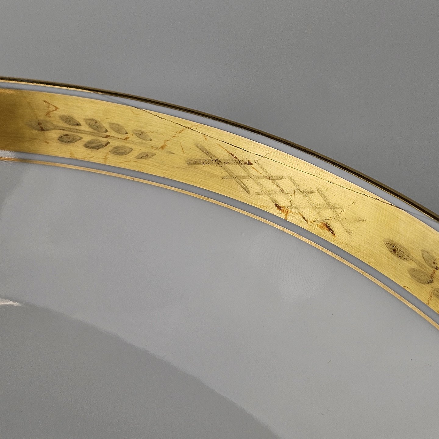 Stel nr. 607 er i hvidt porcelæn og har en guldkant med bladværk