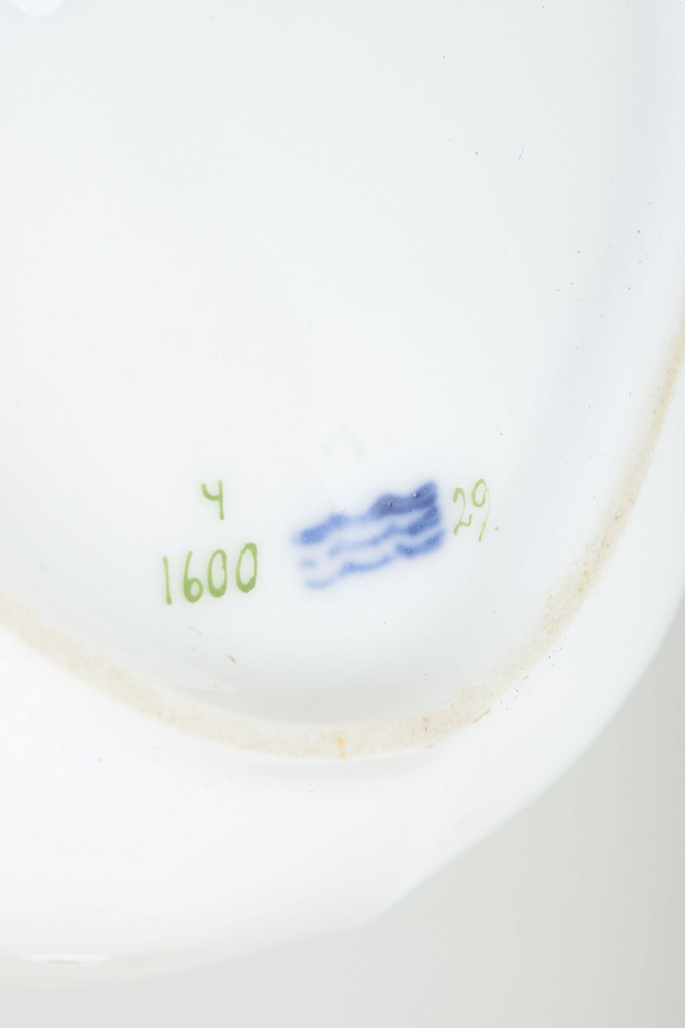 Royal Copenhagen was founded in 1775 under the patronage of Queen Juliane Marie and is renowned for its hand-painted porcelain. The “Saxon Flower” pattern was introduced in the late 18th century, inspired by botanical engravings. The series remained popular well into the 20th century, and combinations of small trays and vases were commonly used as table and interior decorations.