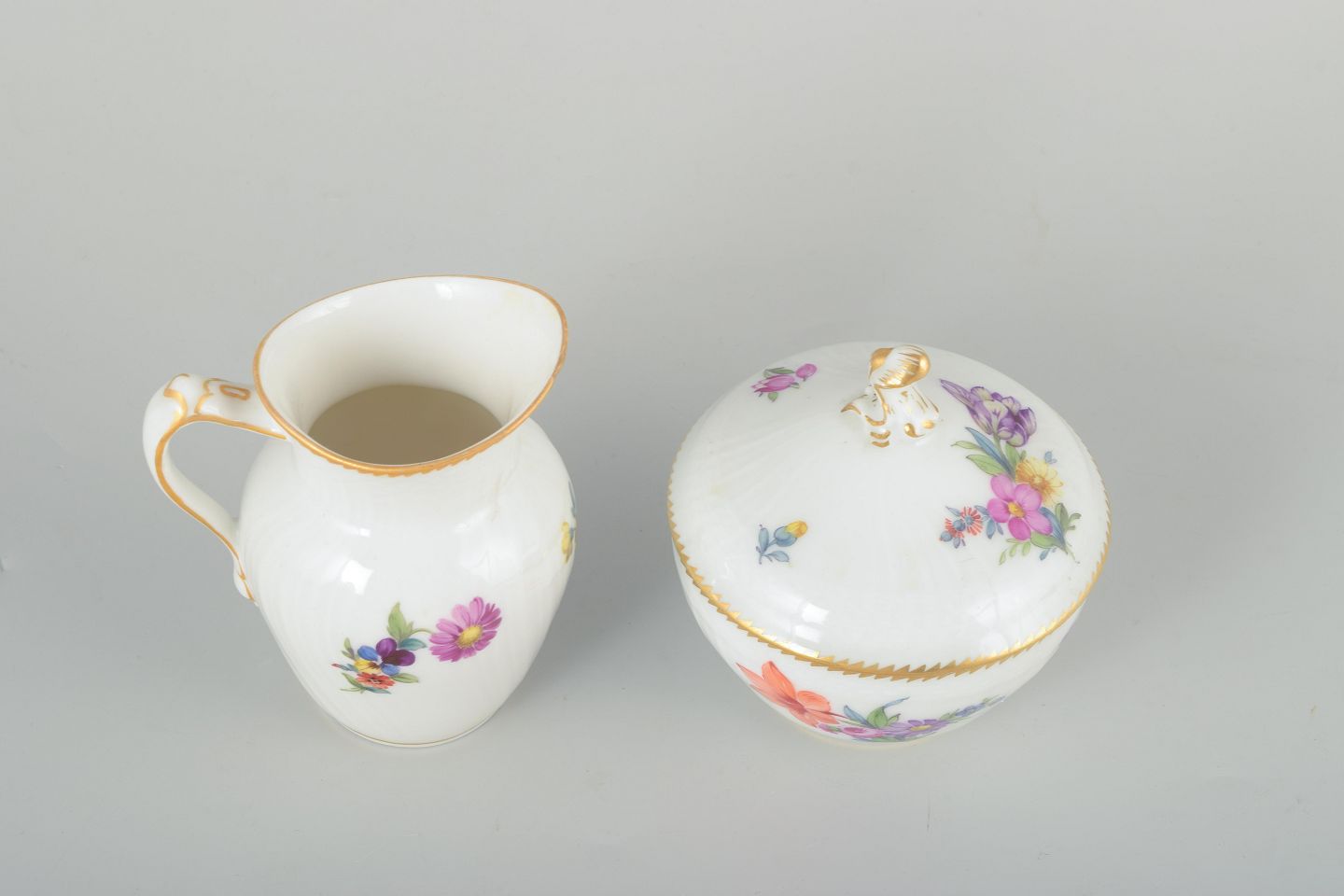 Sachsisk Blomst sukkerskål og flødekande, ca. 1900.