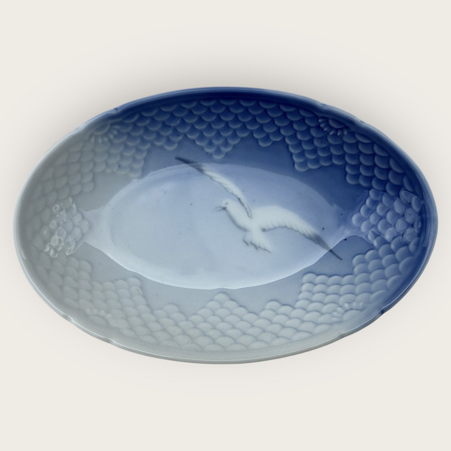 Bing & Grøndahl, Mågestel uden guld, lille serveringsskål, 2. sortering #349, 18x12cm, Design Fanny Garde *Pæn stand*Lager: 1