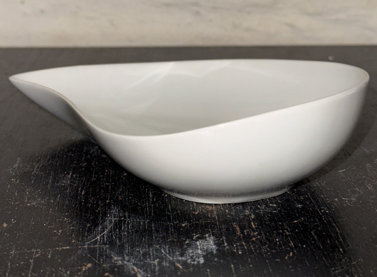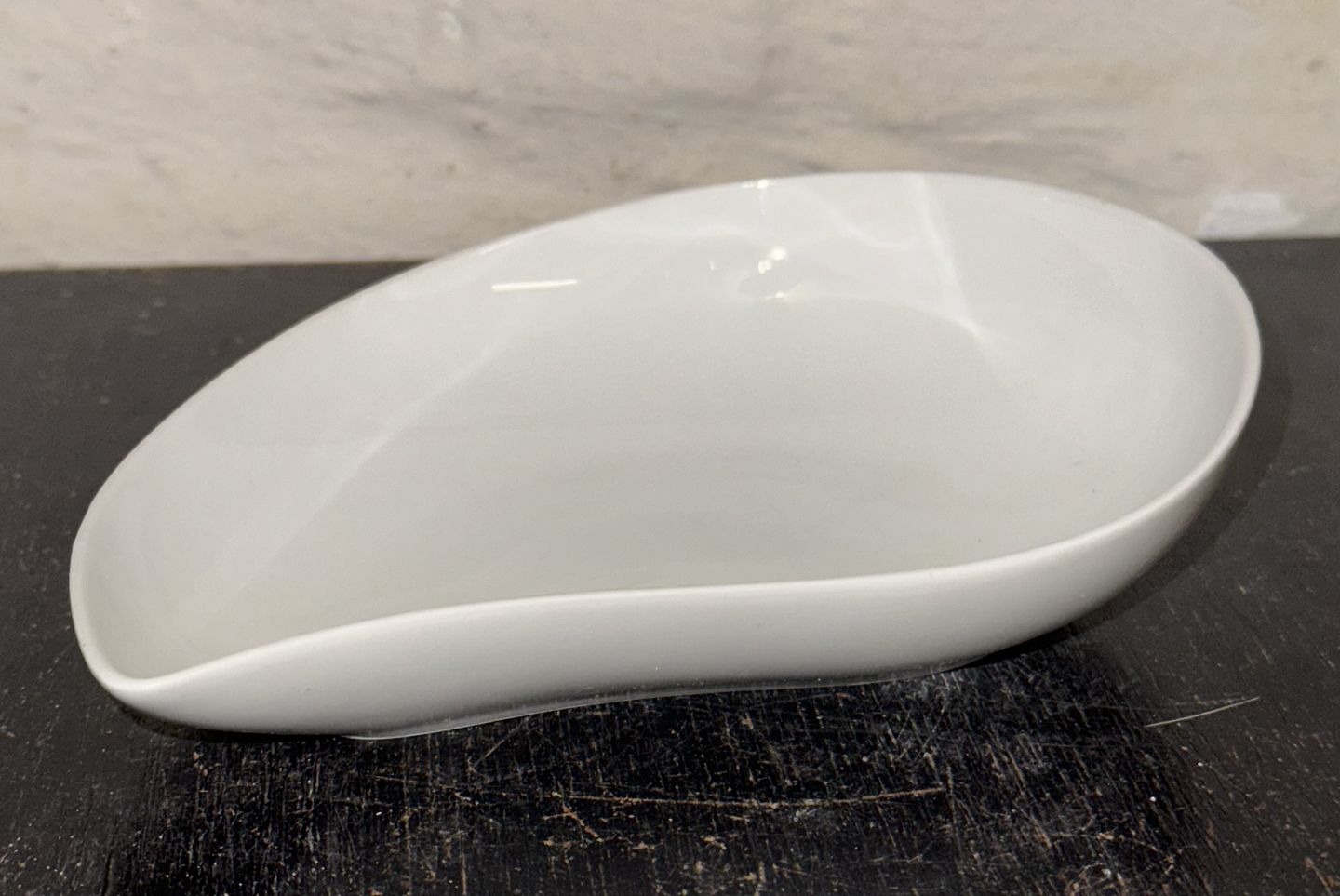 HENNING KOPPEL: Nyreformet skål i hvidt porcelæn fra Bing og Grøndahl. Fremstillet på B&G fabrikken. I god stand. Ingen skader eller reparationer. 1.sortering. Fabriksmærket på bunden sammen med modelnummer 38. Mål: H. 4,2 cm L. 16,4’cm B. 12 cmv/ Jesper Reutemann