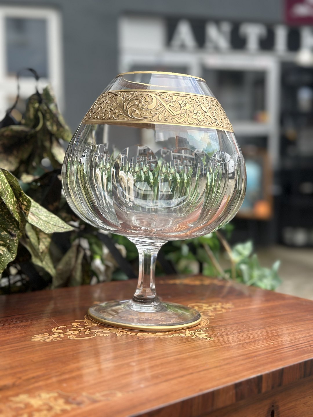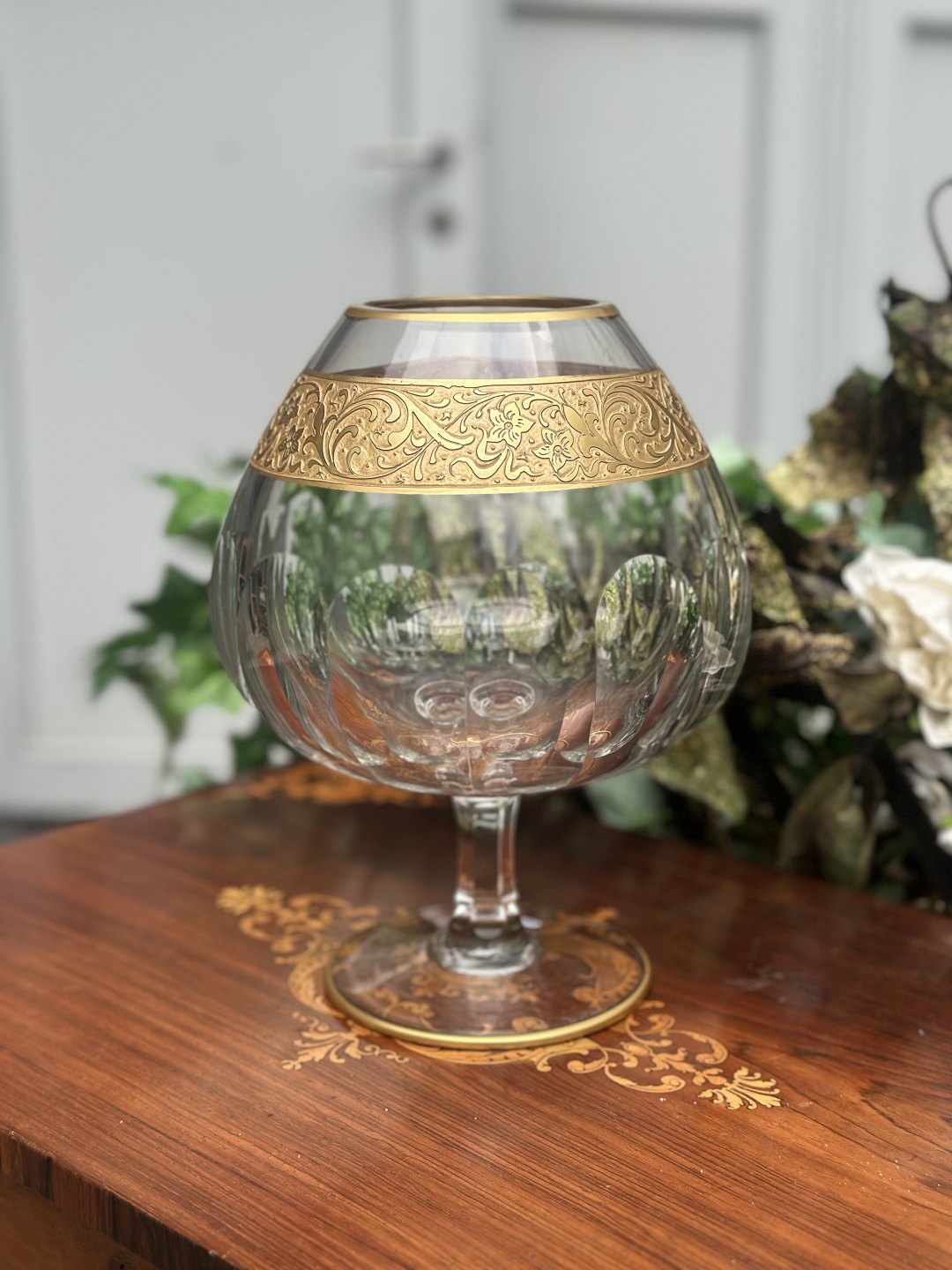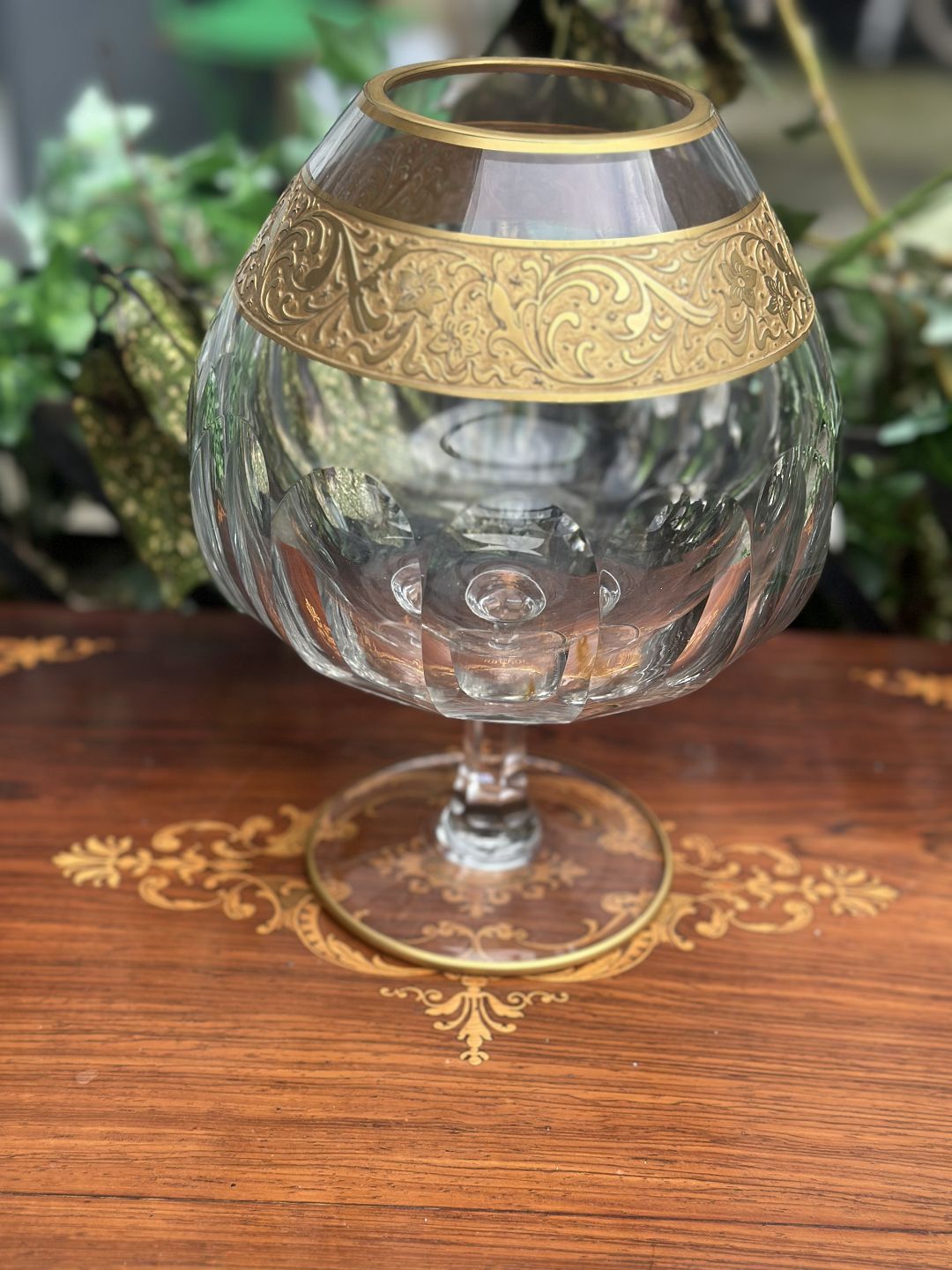 Moser glas pokal krystal , meget høj kvalitet fra midten af 1900 tallet , bredt bånd af forgyldt 24k guldemalje med indgraverede blomster i klassisk barokH 18 cm