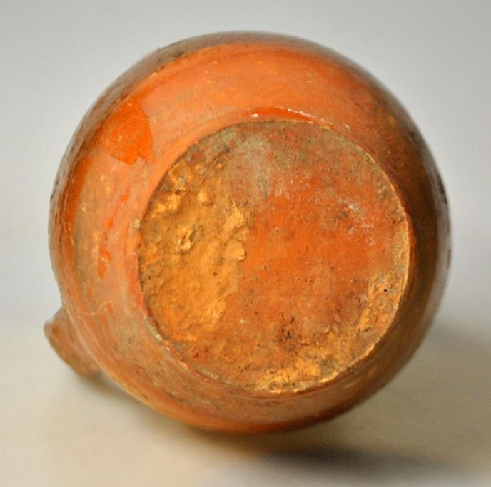 Antik dansk ler kande, 19. årh. Rødler med brune og hvide glasurer. H.: 19 cm.Emne nummer: 28404