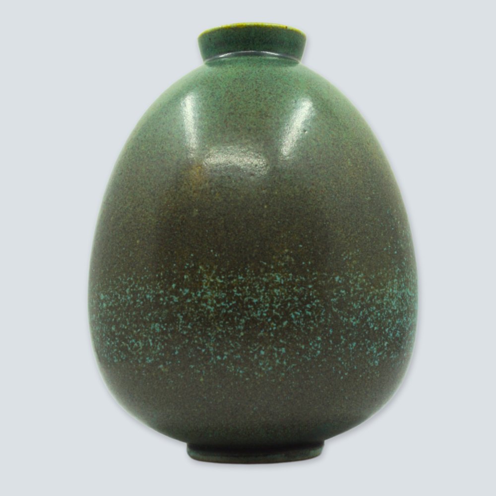 Saxbo stoneware.Eva Stæhr-Nielsen for Saxbo; A vase decorated with a blue and brown glaze #287. Stamped