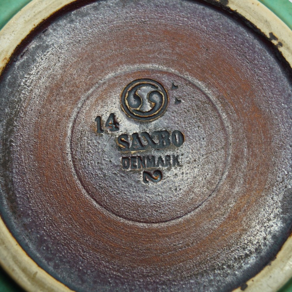 Saxbo stentøj.Eva Stæhr-Nielsen for Saxbo; Vase af stentøj dekoreret i en blå grøn glasur #14.