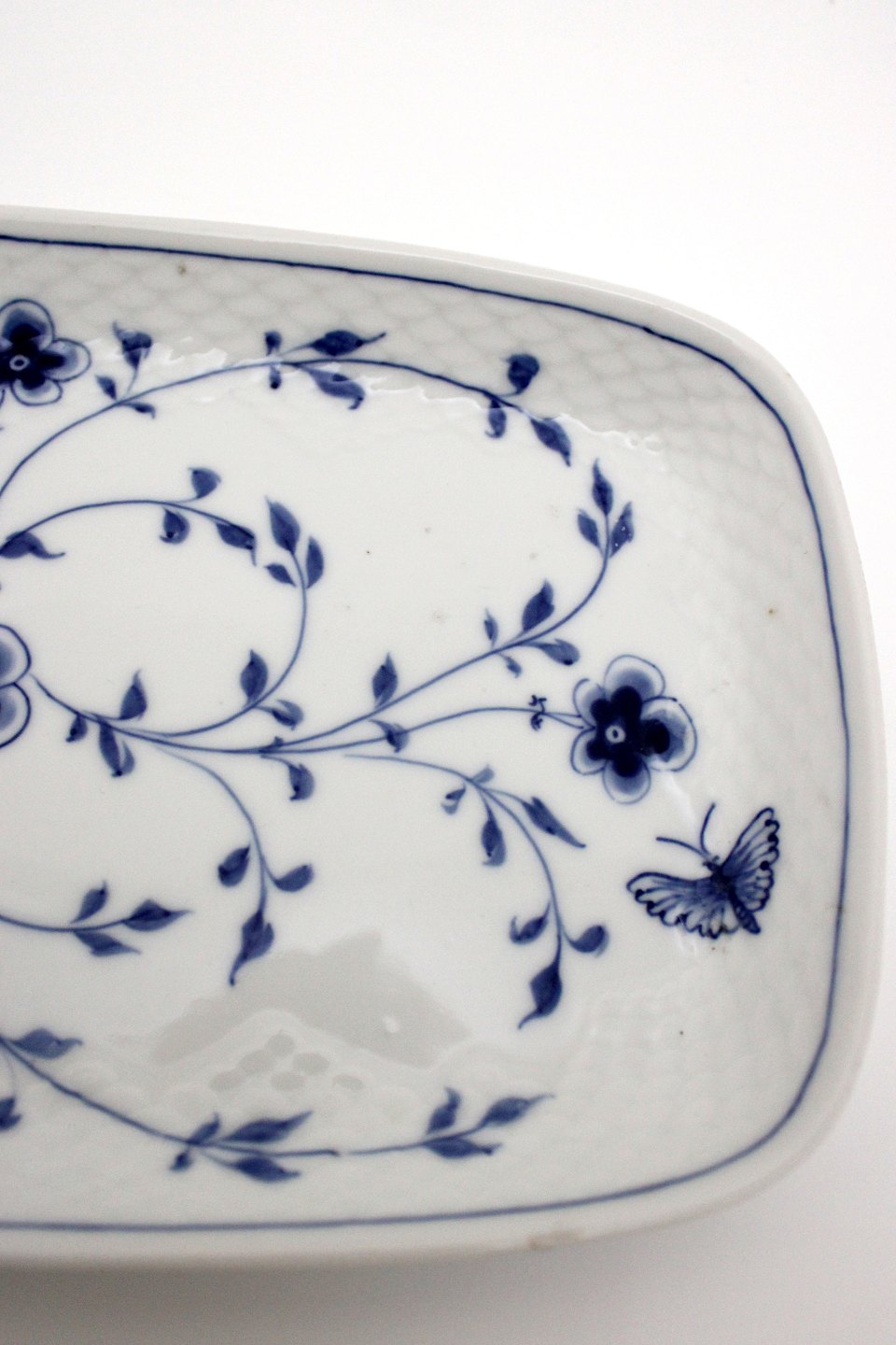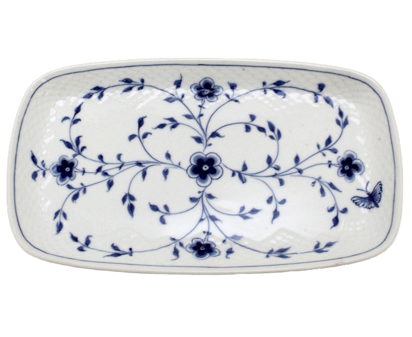 Bing & Grøndahl, Sommerfugl, Bakke til sukker og fløde. Højde 2 cm. Længde 27 cm. Bredde 15,5 cm. Produceret i perioden 1915-1948. I. sortering. Fin stand. Pris: 475 kr. stk. Lager: 1 Udstiller