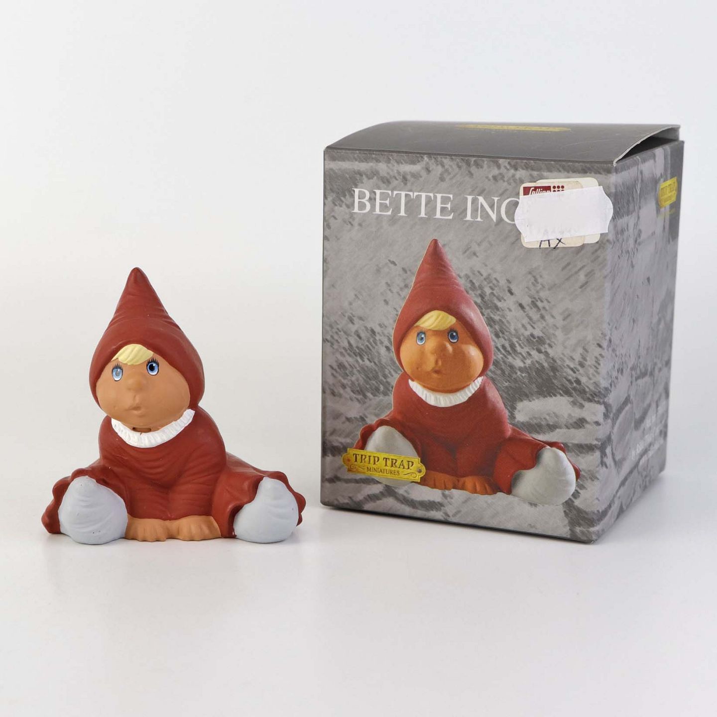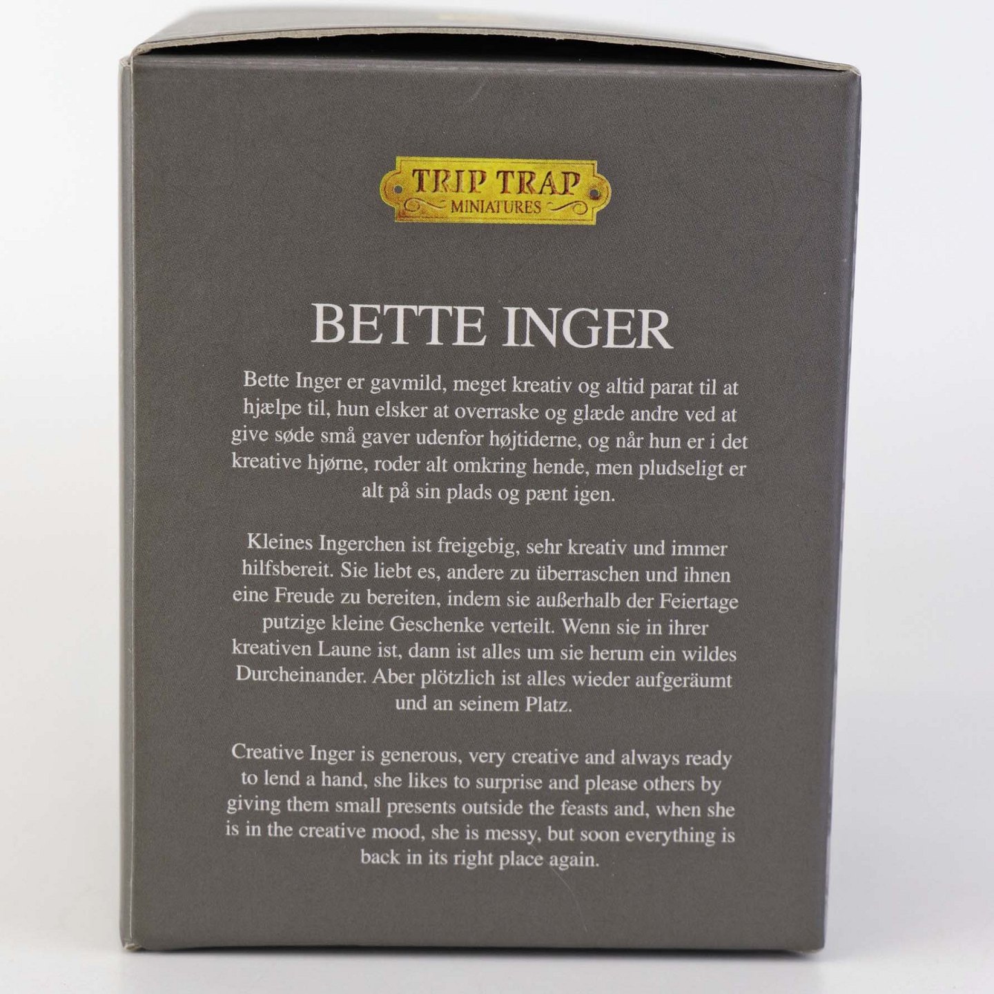 Figur med motiv af den gavmilde nissepige Bette Inger fra serien Klarborg jul. Figuren kommer med original boks.Design Etly Klarborg