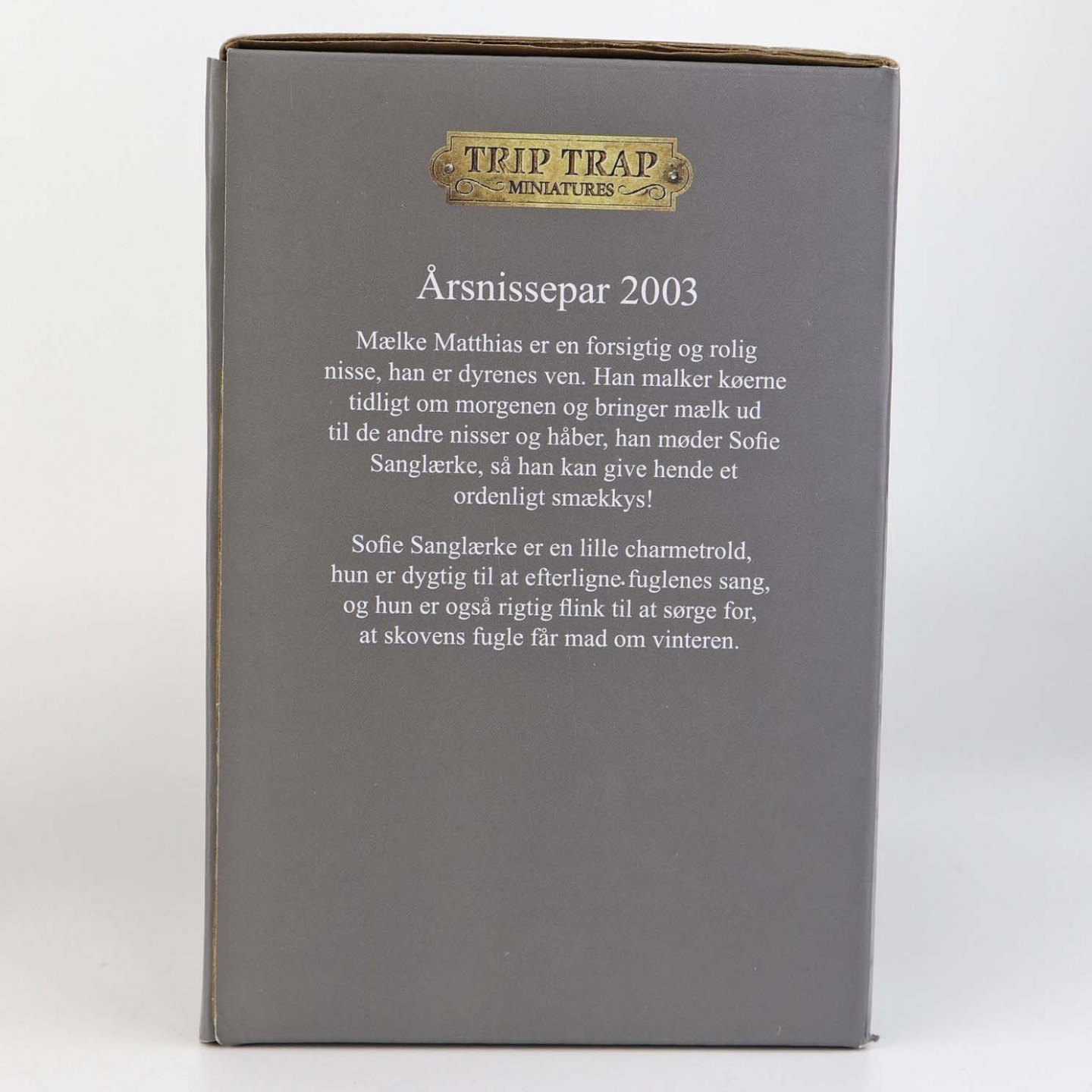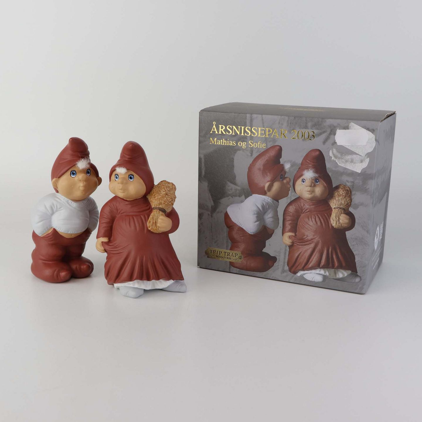 Figursæt med motiv Mathias og Sofie, som er årsnissepar fra år 2003 fra serien Klarborg jul. Figurene kommer med original boks.Design Etly Klarborg