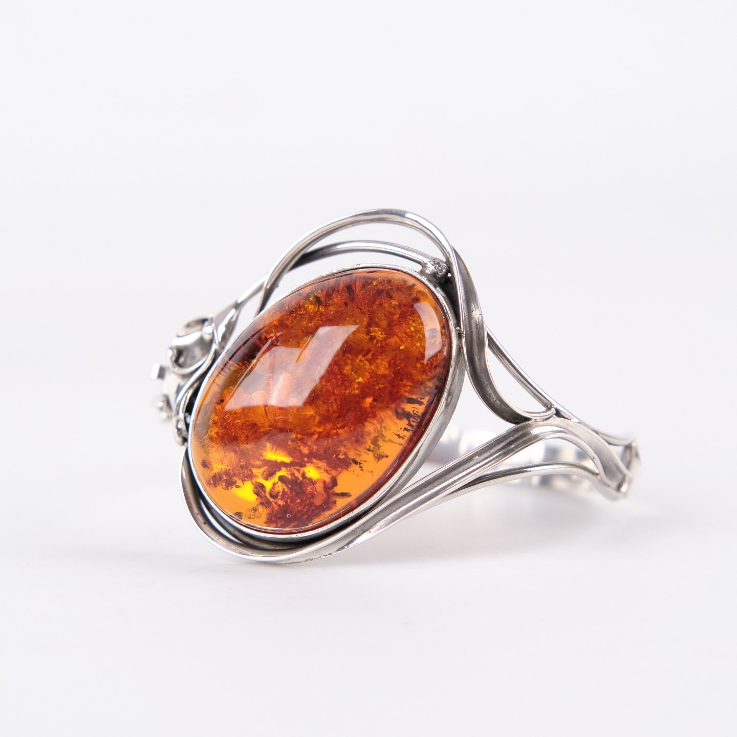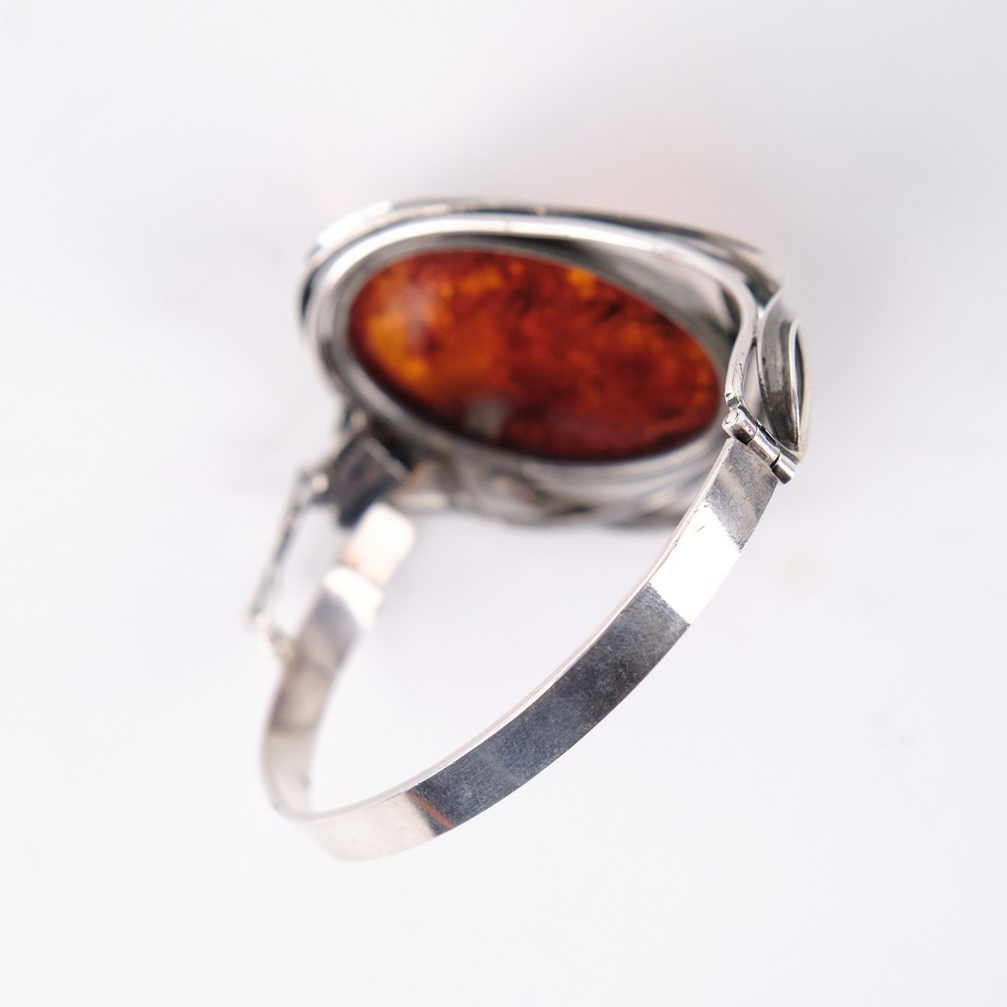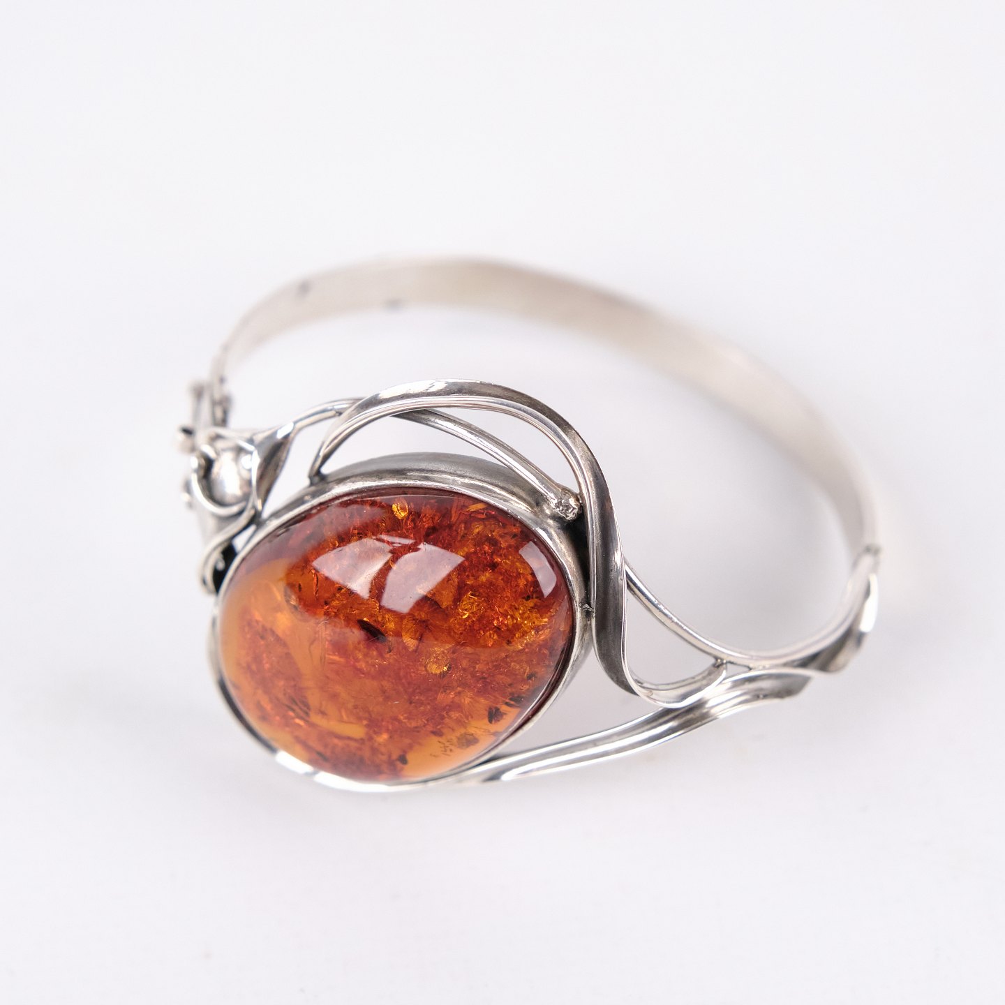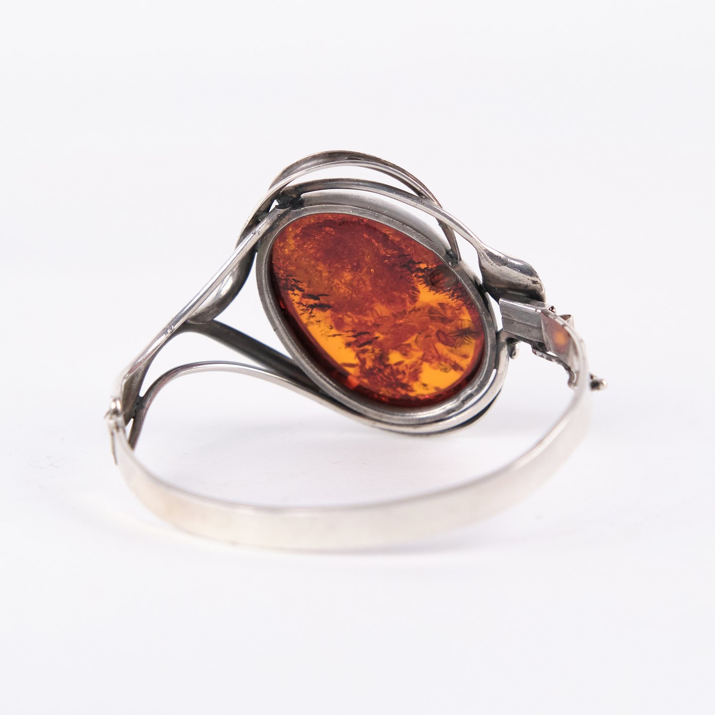 Armring i sølv med rav og sikkerhedslås. Unikt smykke design med rav.— Type: Armring