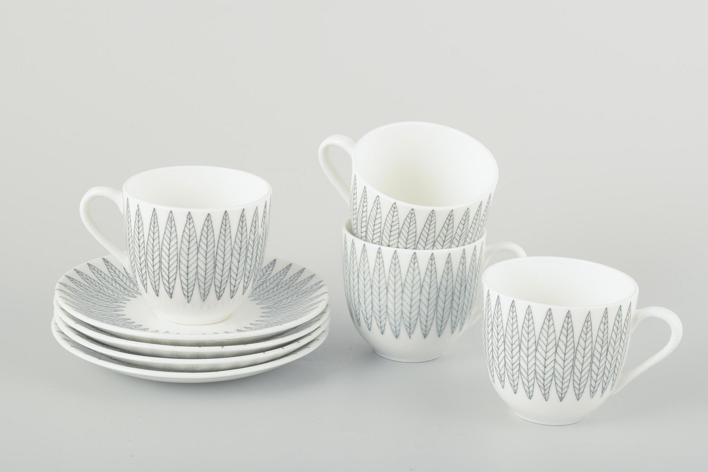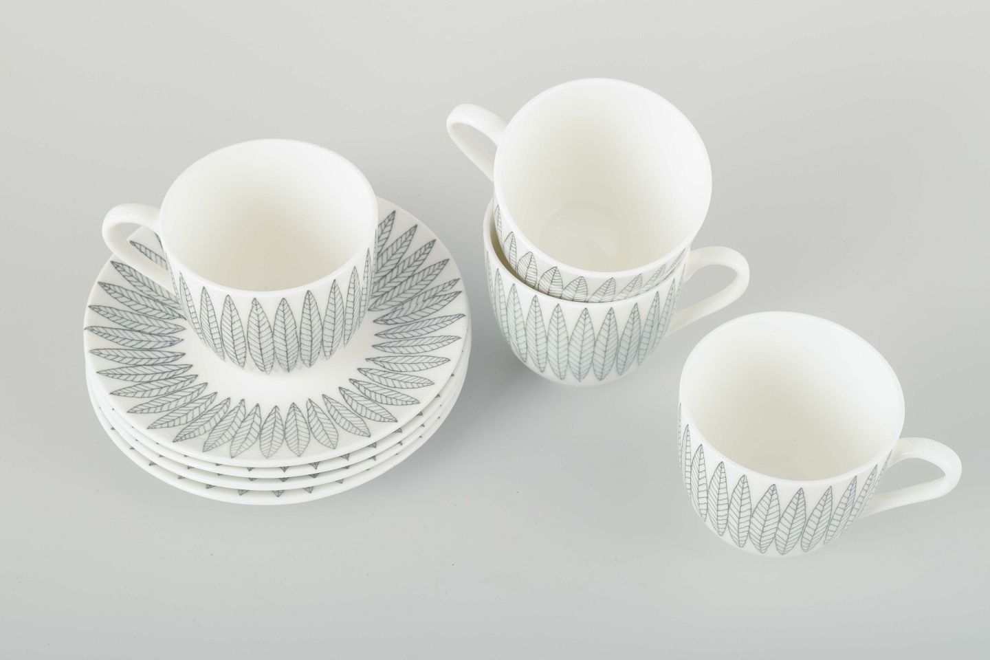 Stig Lindberg for Gustavsberg4 kopper og underkopper “Salix”, midten af 1900-tallet.