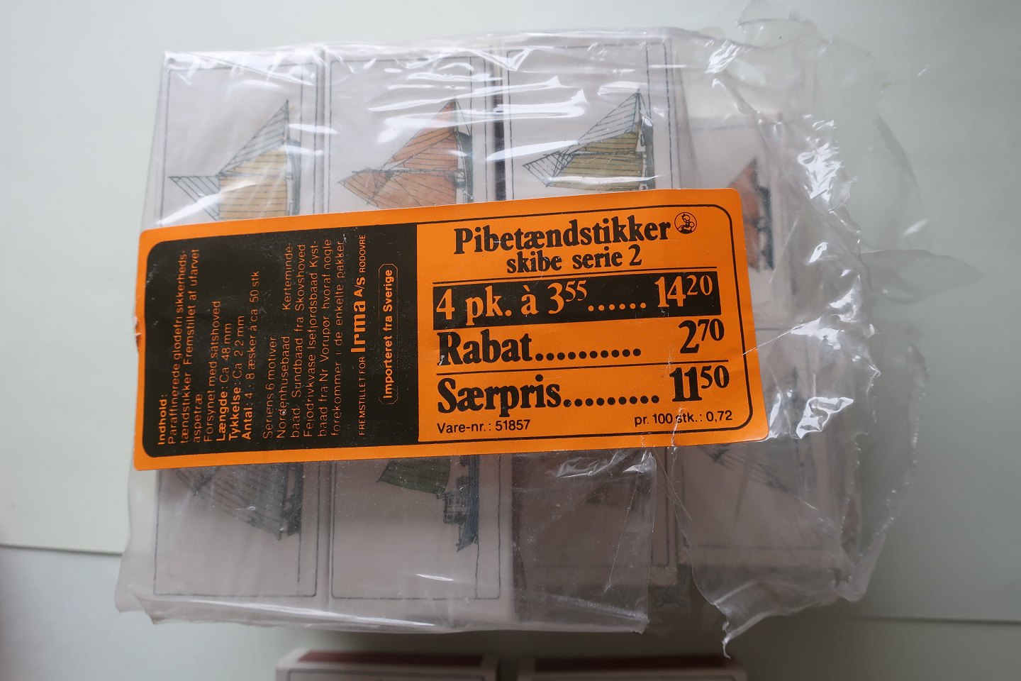 Af label fremgår det, at æskerne er "Skibe Serie 2, hele seriens 6 motiver er: