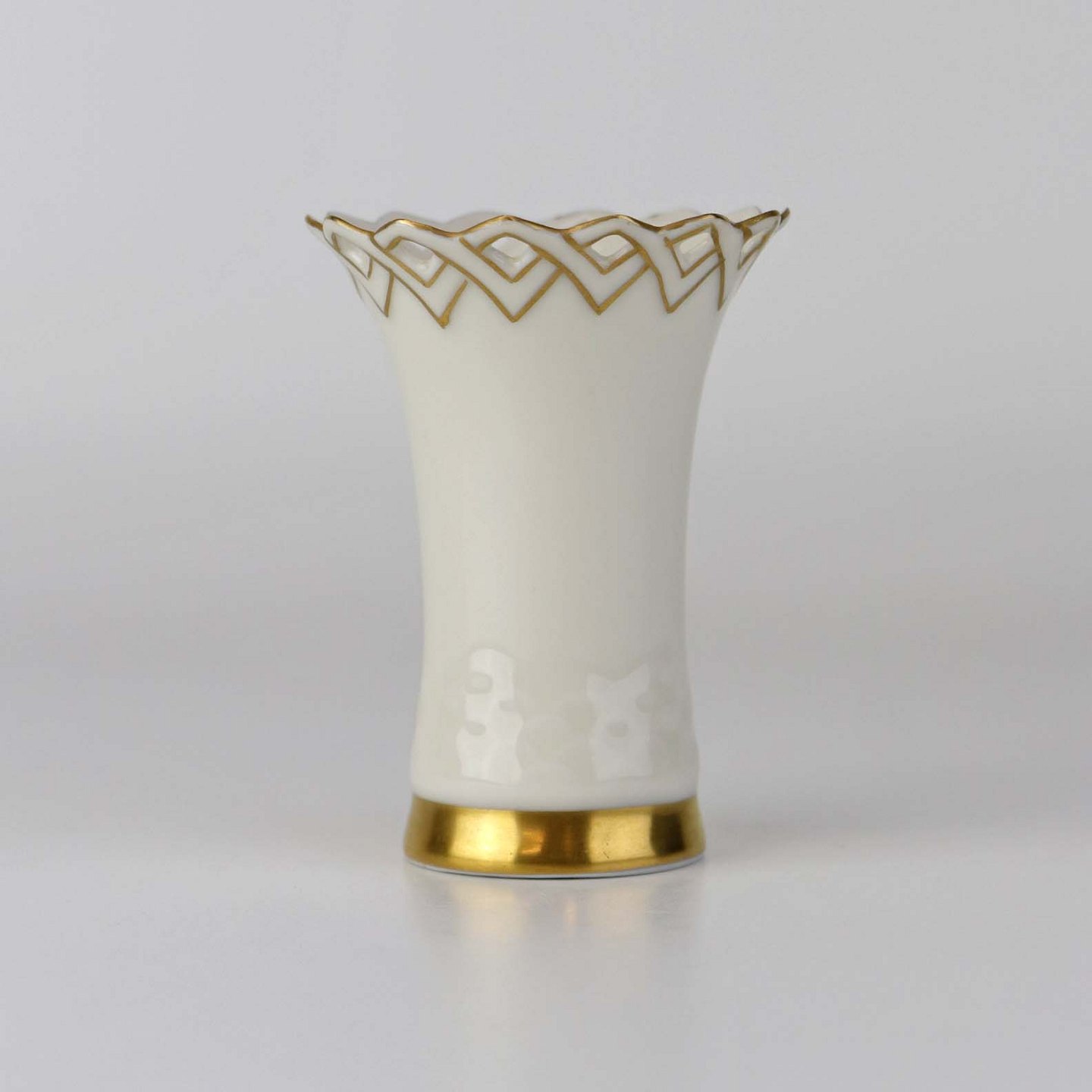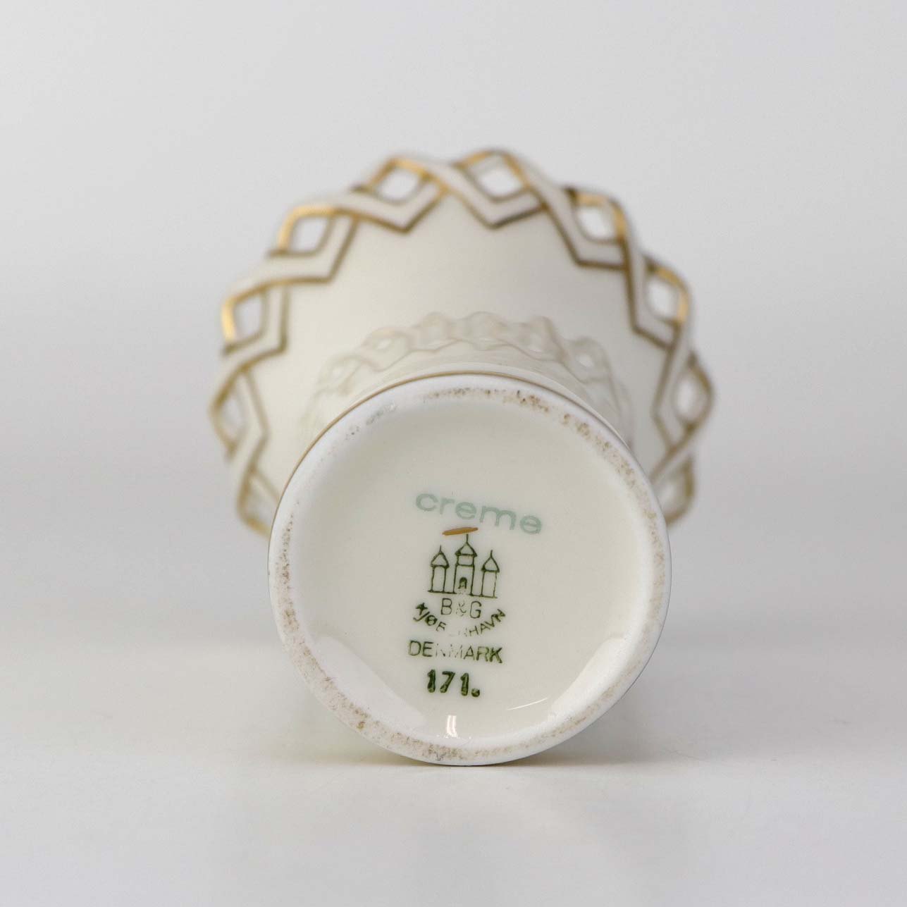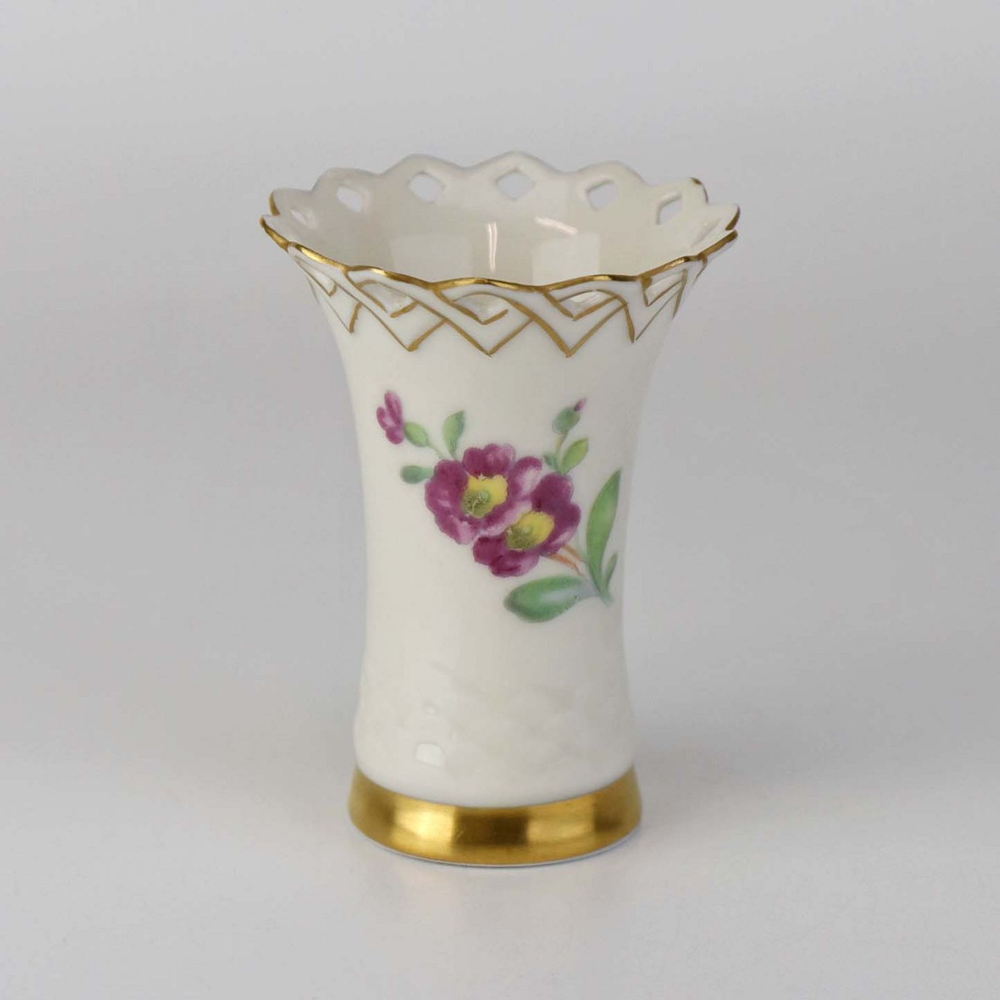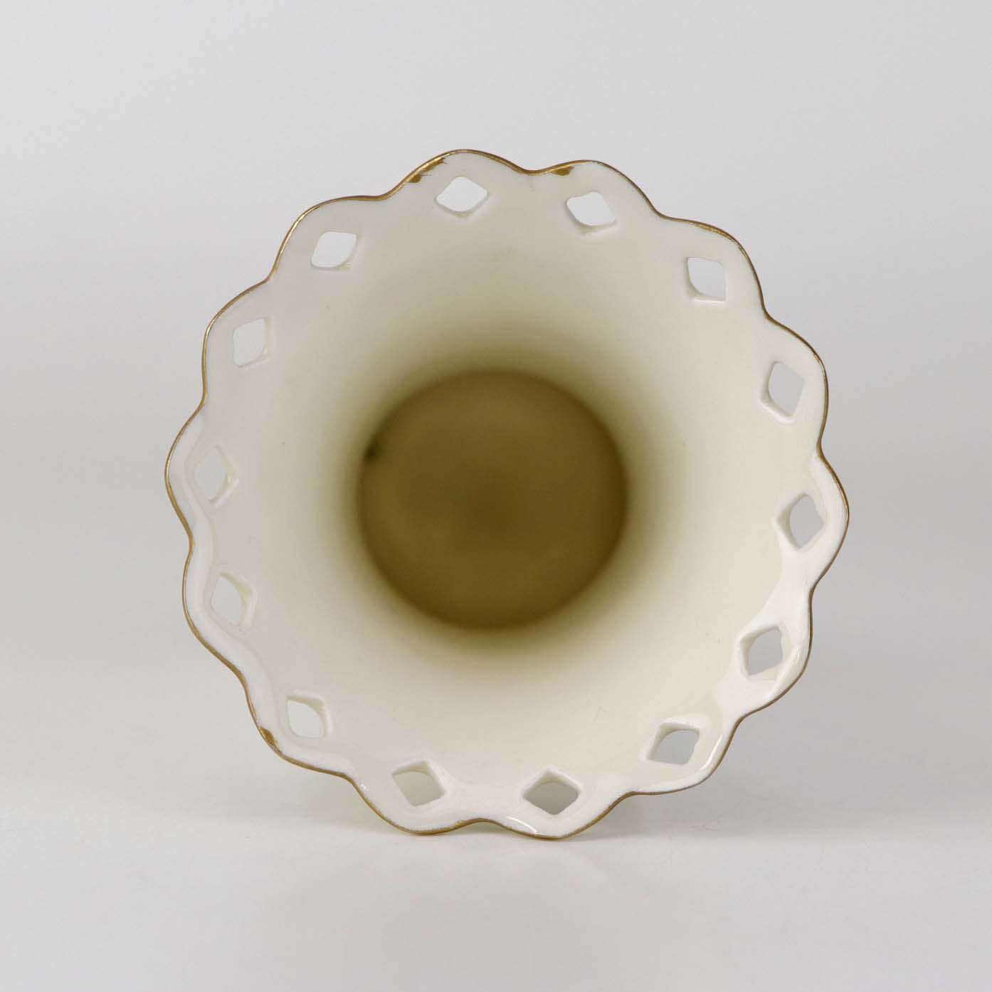 Lille vase i porcelæn med gennembrudt kant fra stellet Saksisk blomst creme. Nr. 171Producent Bing & Grøndahl
