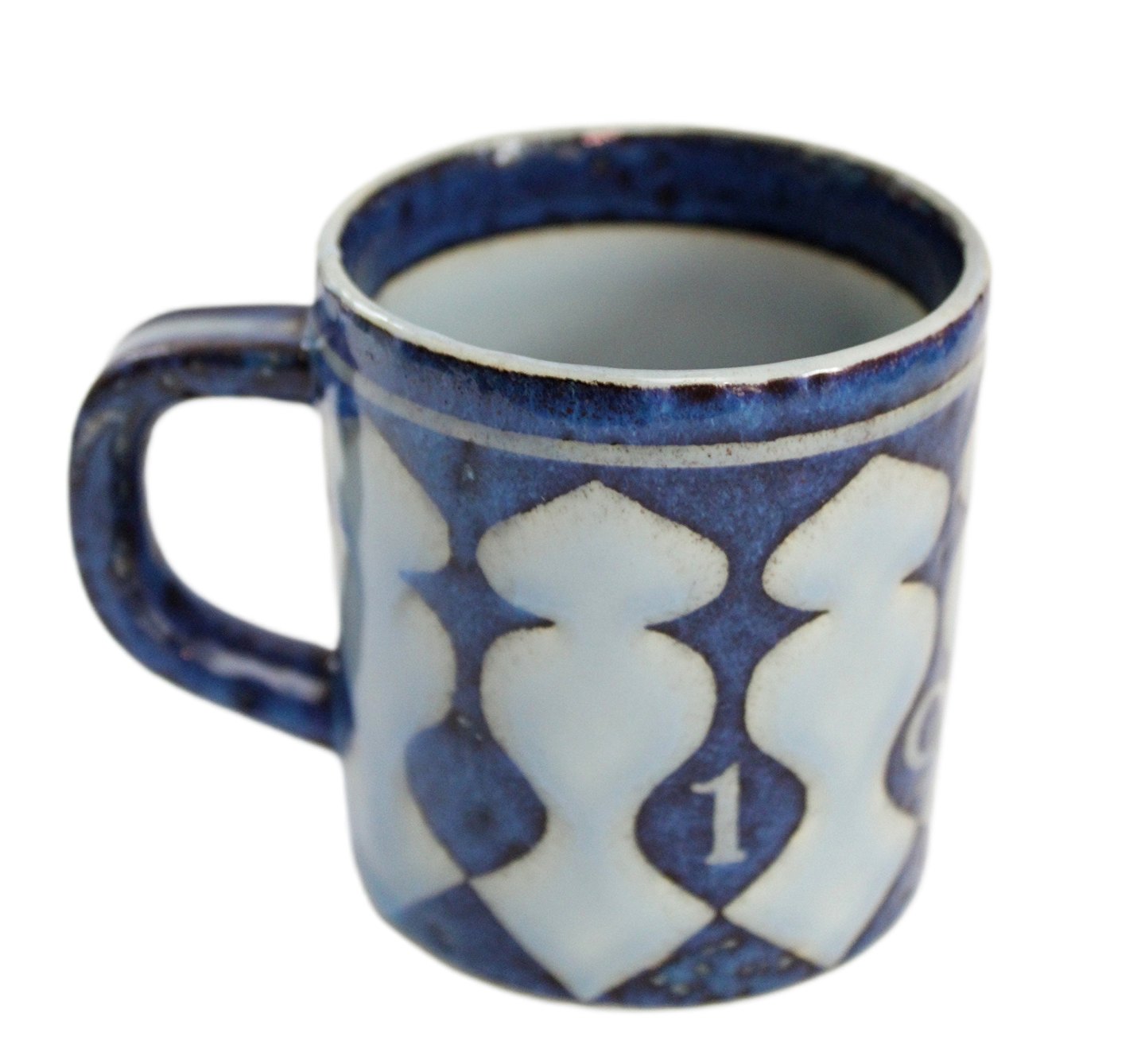 Aluminia, Lille årskrus i kunstfajance. Designer Nils Thorson. Dette er det første årskrus. Nr. 3495. Årskrus er produceret fra perioden 1967 til 2014, fra 1968 er det Royal Copenhagen. Højde 7,5 cm. Diameter 6,8 cm. Lidt ujævn bemalet kant. Pris: 700 kr. stk. Lager: 1 Udstiller