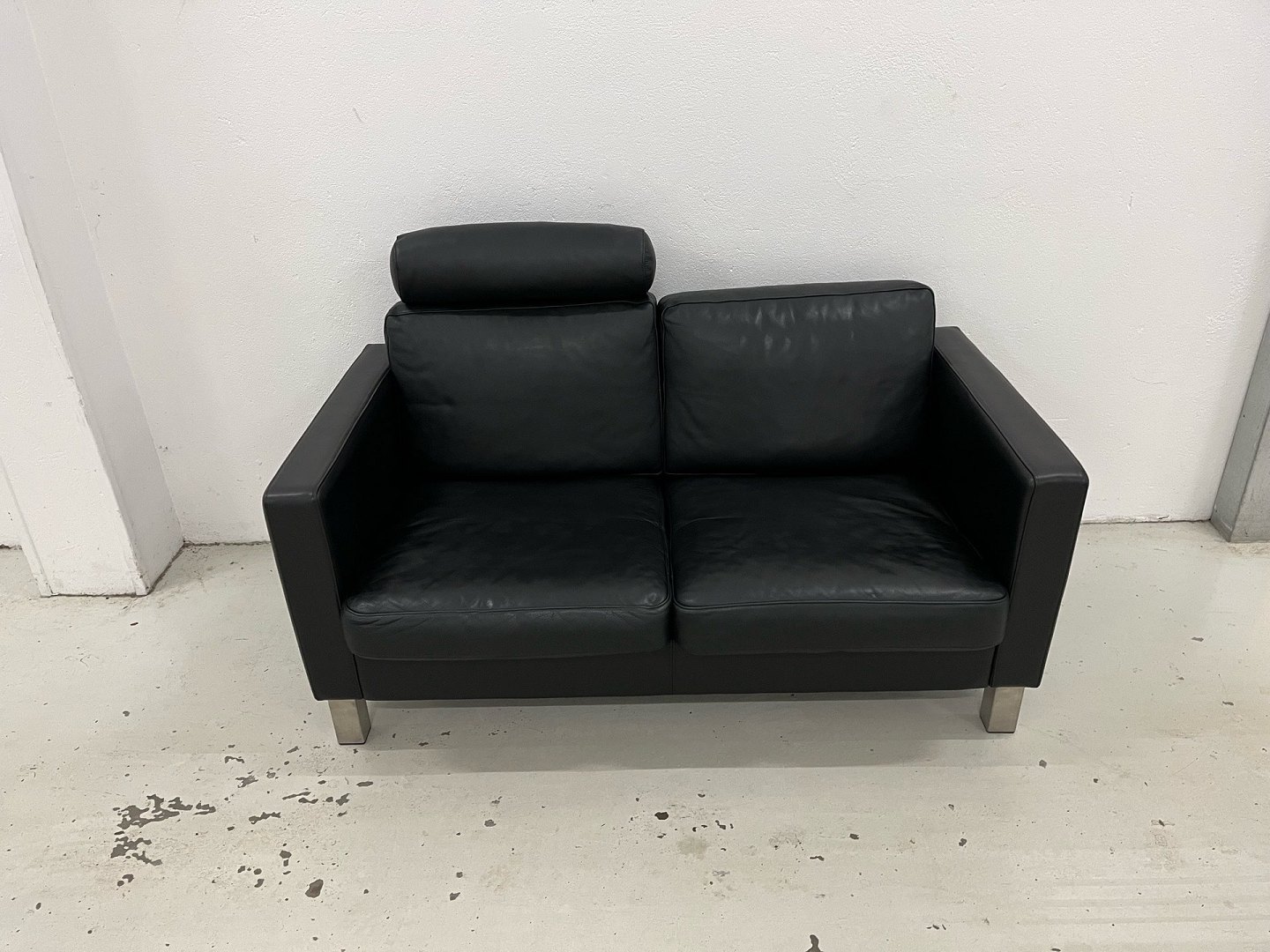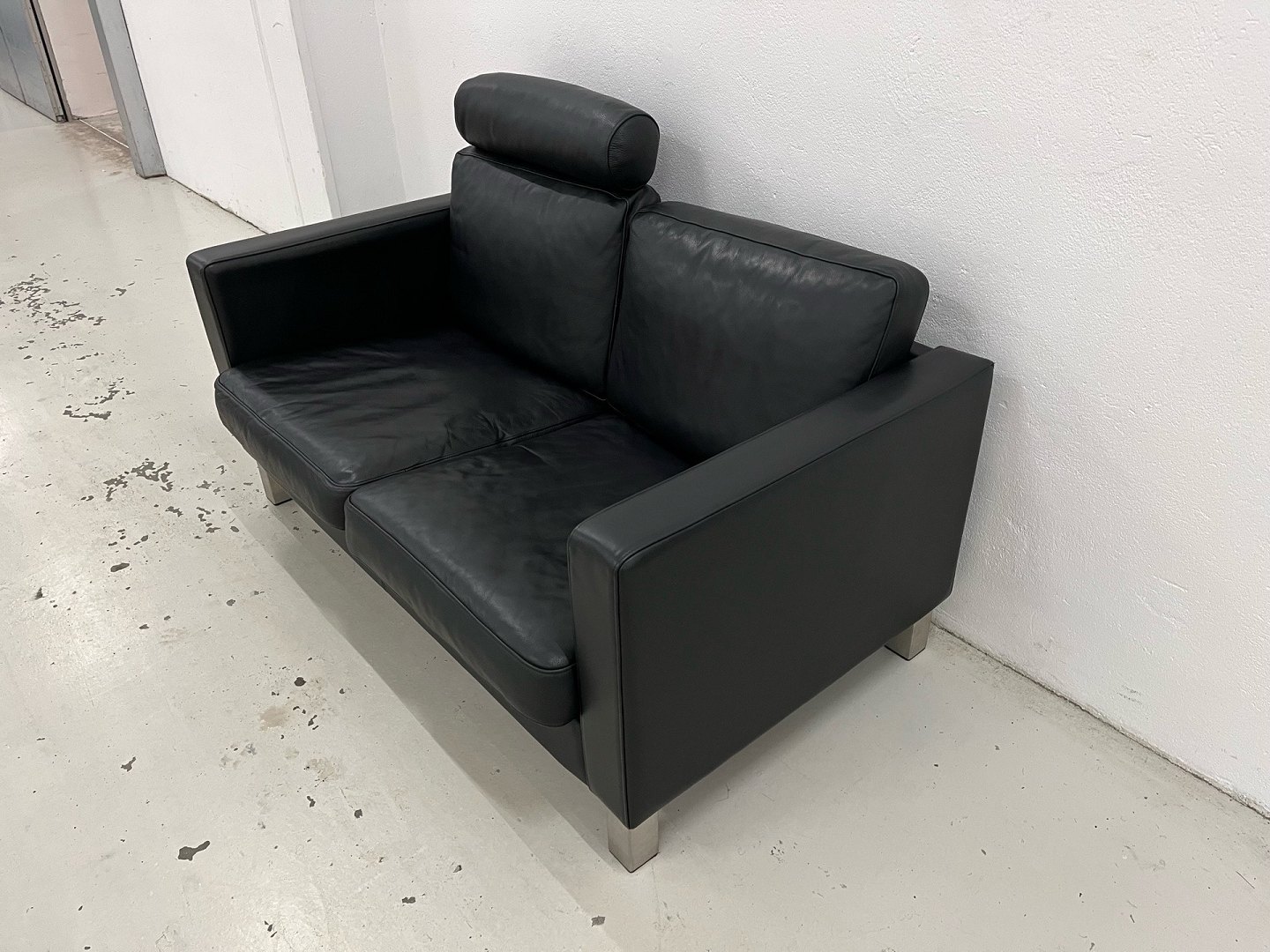 1.493 / 5.000Mogens Hansen MH321 2-seater sofa in black prestige leather and with brushed steel legs. New price 35,403,-The sofa is cleaned and leather-treated and in really nice condition, including 1 neck pillow. The sofa has had one owner and from a pet/smoke-free home. PS also has a 3-seater in the same model in stock. Lovely 2-seater classic design sofa from Mogens Hansen. The sofa is fitted with a down-filled seat insert, which provides just the right comfort and the right look. Since the sofa is built with a light and simple design, it does not appear heavy in a living room, but rather light, beautiful and with fantastic durability that can withstand the use of the whole family. The sofa is produced at Mogens Hansen's own factory in Aarhus, where all components in the furniture production are Danish-made and meet high environmental standards. With a sofa from Mogens Hansen you invest in a piece of Danish furniture history that will decorate your living room for many years to come and they are also found in all Danish embassies around the world.Designer: Mogens HansenMeasurements: 2 Pers.L: 155 cmD: 85 cmH: 75 cmSD: 54 cmMaterial: Seat cushion: DuntopLeather: Prestige LeatherOur concept. Purchase of newer/used furniture. Thorough cleaning and treatment. Viewing by appointment. Free delivery throughout Denmark and the world for a fee. See also our other designer furniture from, among others, Poul Kjørholm, Wegner, Erik Jørgensen, Mogens Hansen, Søren Lund, Arne Jacobsen, Bruno Mathsson, Jørgen Gammelgaard, Nielaus, Skalma, Fritz Hansen, Cph, Skovby, Boconcept, Bolia, and many others on our website Mrretrodesign.dk